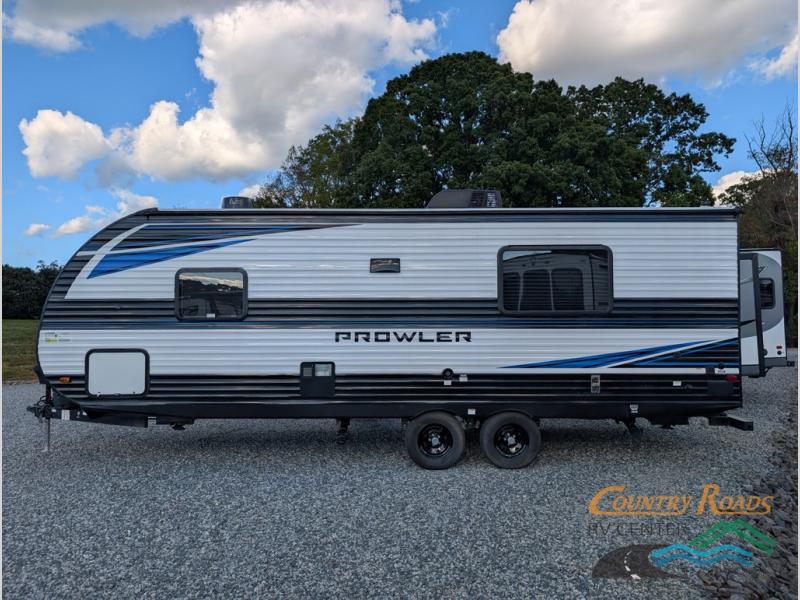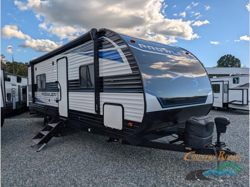 Get ready for comfortable and easy camping with the Prowler travel trailers by Heartland. These models feature durable construction with the performastructure aluminum front wall, the cambered structural steel I-beam frame, and the fully walkable roof. The MEGA bright pass-through storage features 52 cu. ft. of exterior storage with mega sized access doors, LED lights, and a finished interior to keep your gear secure. You'll fall in love with the at-home kitchen the includes Duralast countertops, a residential refrigerator, plus a stainless steel double bowl undermount sink for easy clean-up. These travel trailers also feature panoramic windows, an EZ clean interior, USB charging ports throughout, and many more comforts! Don't let the Prowler travel trailers slip away. Choose your favorite floorplan today!