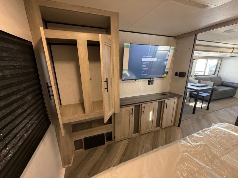 LIKE NEW 2022 HEARTLAND PROWLER 323BR, SUPER CLEAN. IS A RV LOADED WITH LUXURY!! 37 LONG. 2 PRIVATE BEDROOMS, 2 XL SLIDE. 2 COLD A/C. QUEEN MASTER SUITE. PRIVATE REAR QUEEN WITH CLOSET. DINETTE & A SLEEPER SOFA. FRONT PRIVATE BEDROOM WITH WASHER/DRYER CONNECTIONS.