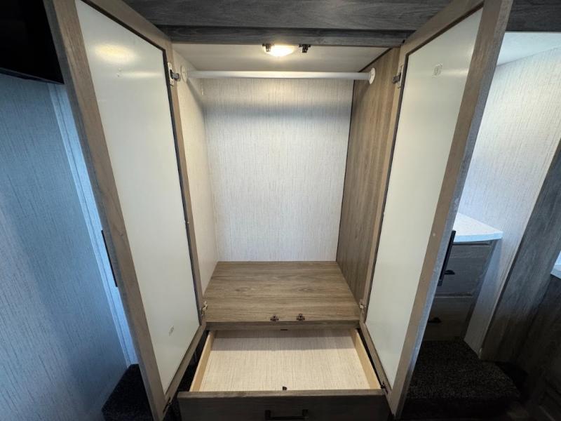 With any Road Warrior toy hauler fifth wheel by Heartland, there is a heated, enclosed underbelly for four seasons of travel, MORryde 3000 suspension for a better tow, a Nev-R-Adjust brake package, hydraulic 6-point level up for easy setup, and a 100-watt solar panel with inverter prep for off-grid camping. The garage allows you to safety take your toys with you thanks to the professionally installed tie downs, the cold crack resistant flooring is durable, and the residential style furniture with USB station is comfortable, stylish and allows you to keep your electronics ready for the next adventure. Choose one of these luxury crossovers and launch your adventurous side on its next journey!