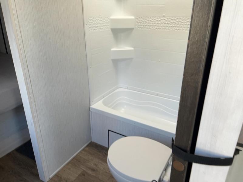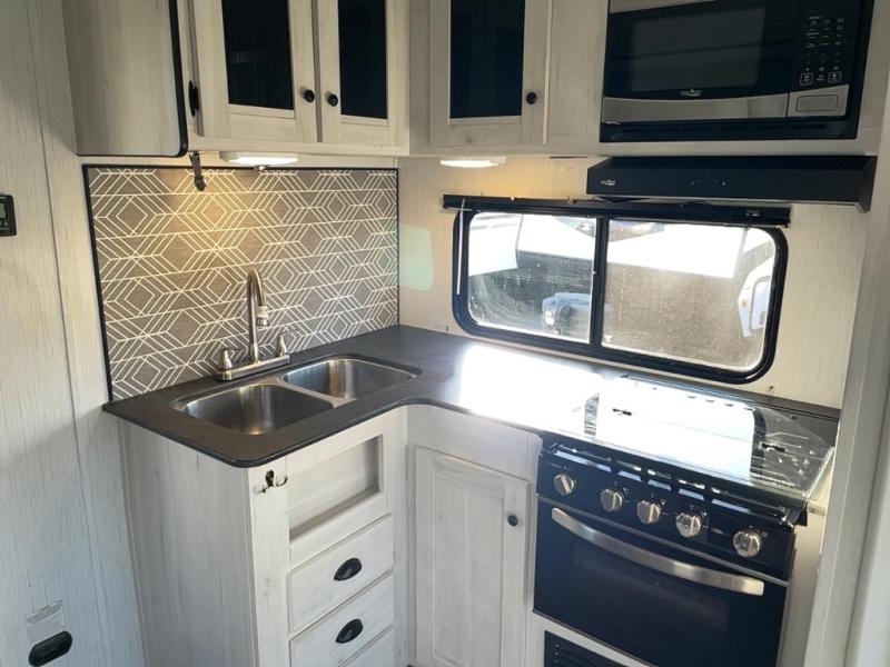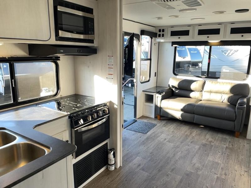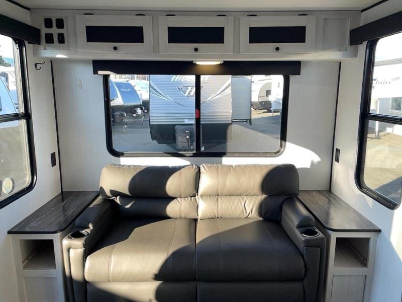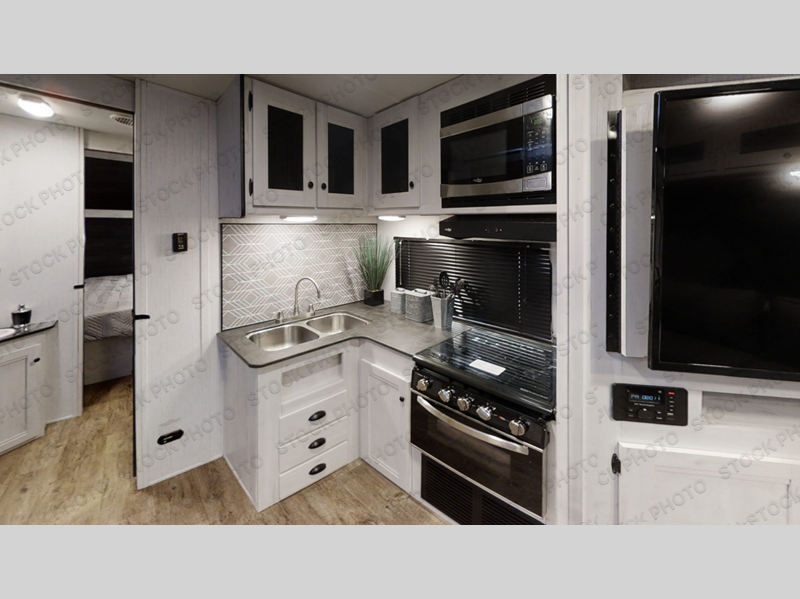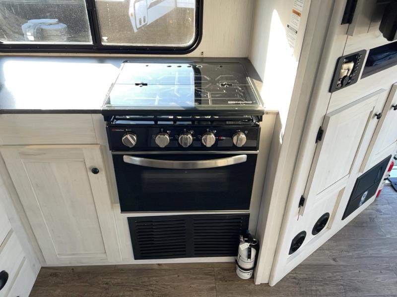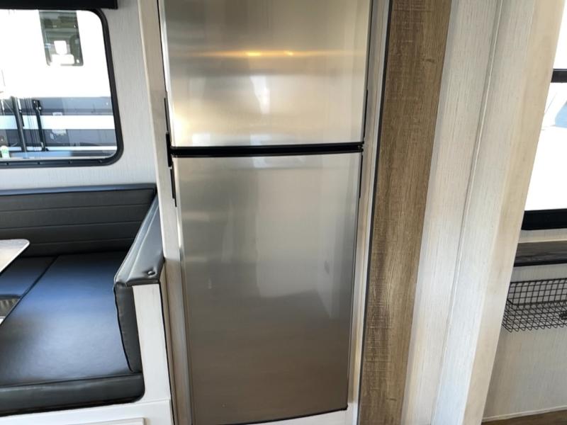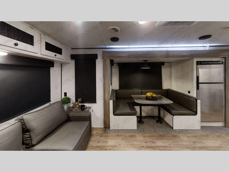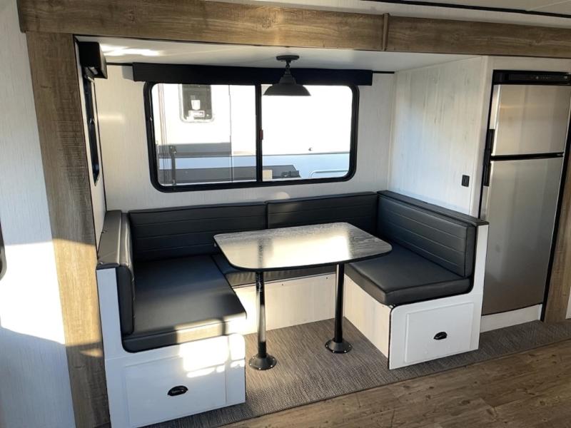 With dual entry doors, you will experience a smooth flow of traffic in and out of this travel trailer! One of the entrances even leads directly into the front master suite with a queen bed that has under-bed storage and wireless cell charging stations, plus an entrance into the walk-through bathroom. Prepare your best home cooked meals with the three burner cooktop and 10 cu. ft. stainless steel refrigerator then enjoy them at the U-shaped dinette slide. Relax each evening on the rear sofa across from the optional LED HDTV if you chose to add it or head outside to relax underneath the 20' power awning with LED light strip to highlight the good times!