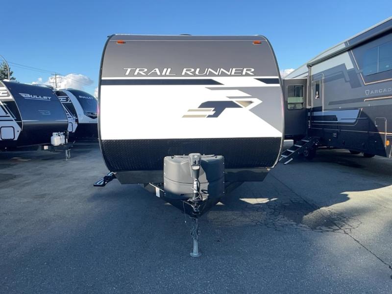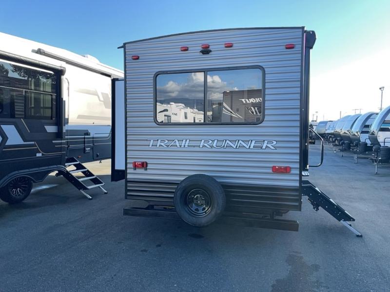 Paradise awaits at the end of the trail with one of these Heartland Trail Runner travel trailers! Experience better wind and water deflection, added strength, and a reduction of tongue weight with the hybrid aluminum front profile that has an aerodynamic radius front cage. A cambered structural steel I-beam frame holds them together and a heated enclosed underbelly protects the units vitals. There is an industry leading mammoth storage space of 57 cu. ft. pass-through storage so you can bring all of your outdoor gear with you. Roller shades in the main living area, woven flooring in all slide rooms, master suites with CPAP storage, and upgraded pressed counters give you the at-home feel you desire. Come find the perfect model for you today!