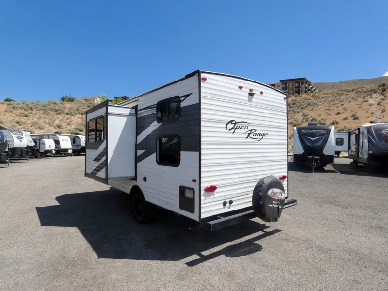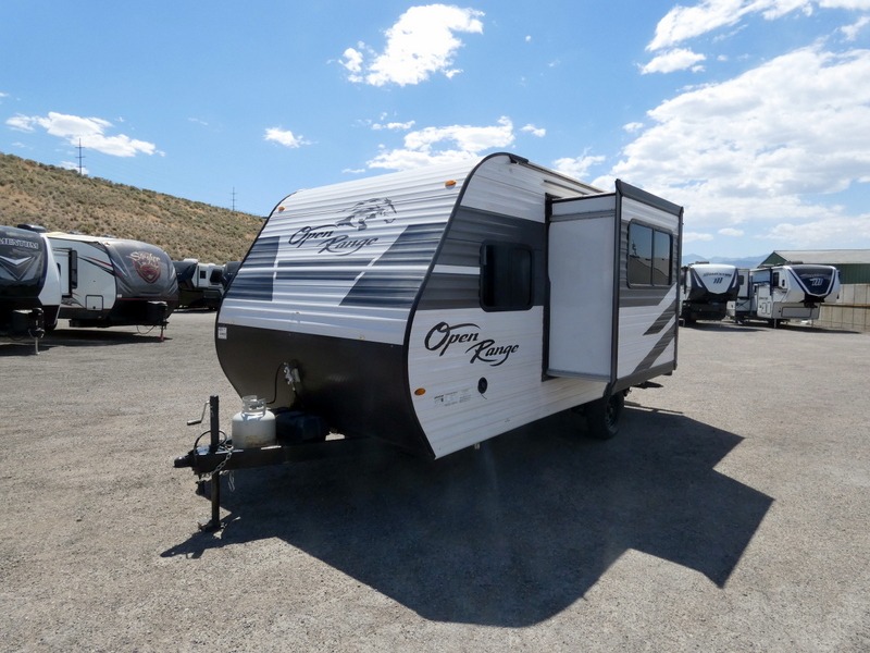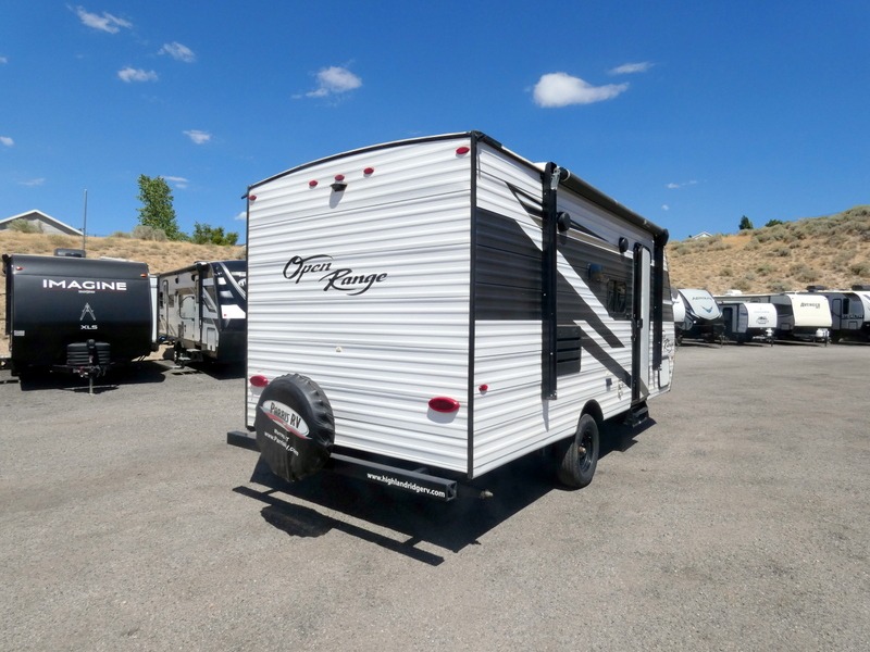 The affordable Open Range Conventional travel trailers by Highland Ridge are ready to meet your camping needs! You will appreciate the durable Magnum Roof system, plus each model is constructed with black front diamond plate protection, 5/8" main floor decking, and self-adjusting brakes with E-Z Lube axles for smooth towing. The 81" interior height means you won't feel cramped when relaxing with friends and family, and the residential vinyl flooring throughout is easy to clean, which will be perfect if you're camping with little ones or pets. These models also include an AM/FM/Bluetooth radio with indoor/outdoor speakers, a digital TV antenna that will go perfectly with the optional LED TV, plus a 13,500 BTU roof mounted A/C to keep you cool on those hot summer months.
