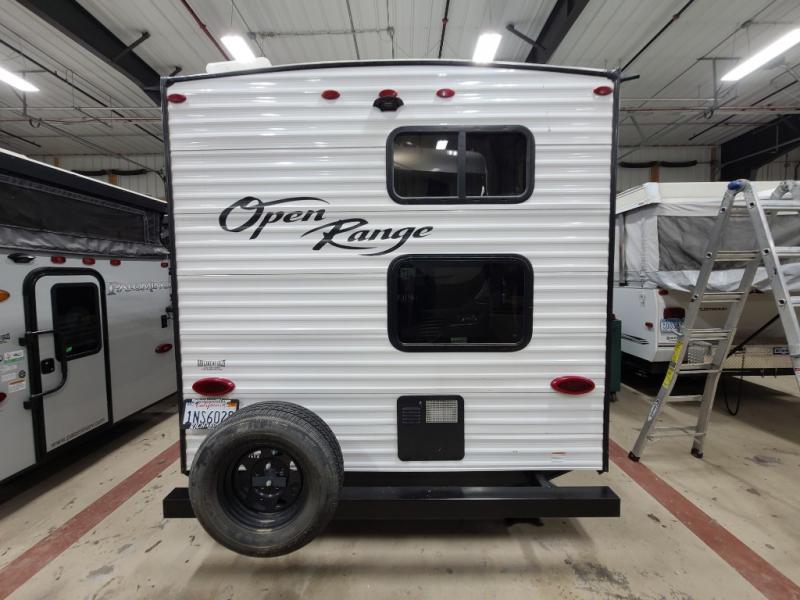 The affordable Open Range Conventional travel trailers by Highland Ridge are ready to meet your camping needs! You will appreciate the durable Magnum Roof system, plus each model is constructed with black front diamond plate protection, 5/8" main floor decking, and self-adjusting brakes with E-Z Lube axles for smooth towing. The 81" interior height means you won't feel cramped when relaxing with friends and family, and the residential vinyl flooring throughout is easy to clean, which will be perfect if you're camping with little ones or pets. These models also include an AM/FM/Bluetooth radio with indoor/outdoor speakers, a digital TV antenna that will go perfectly with the optional LED TV, plus a 13,500 BTU roof mounted A/C to keep you cool on those hot summer months.