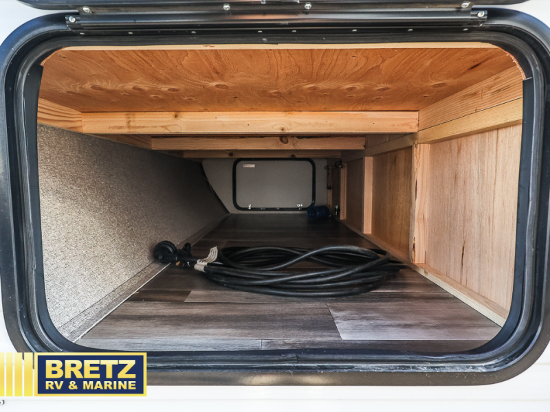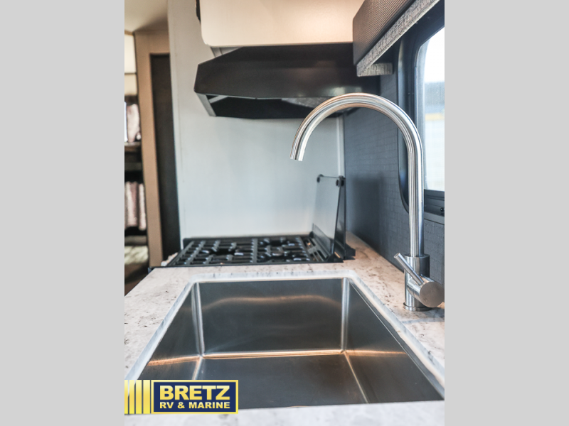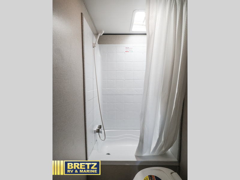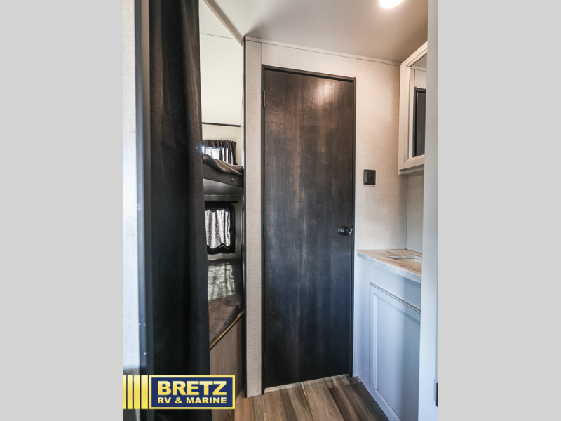 You're going to love every minute spent in this spacious travel trailer. The booth dinette and jack-knife sofa within the large slide out will be perfect for meal times, relaxing, and additional sleeping space. Add the optional LED TV to the entertainment center and you're set up for movie night! This model includes an outside kitchen with a griddle and a refrigerator for cold drinks, plus indoor appliances if the rain has ruined your plans for the day. You will enjoy your own bedroom up front with space-saving sliding doors and two wardrobes for your clothes.