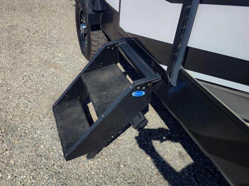 It doesn't take much effort at all to get the Highland Ridge Range Lite Air travel trailer to its next destination! These trailers have been constructed with a Thermal Seal which includes an enclosed, insulated, and heated underbelly and fully insulated roof with a PVC roofing membrane. The 15" off-road radial tires with aluminum rims and rubber torsion axle with increased ground clearance adjustments help you get to your location, and the power tongue jack and stabilizer jacks help set-up run smoothly. The Magnum Roof system is a reliable and durable product that will withstand years of adventures, and the marine-grade exterior speakers add some fun to the outdoors. You also have the ability to add an optional off-grid solar package that comes with a 180W panel and 30AMP controller.