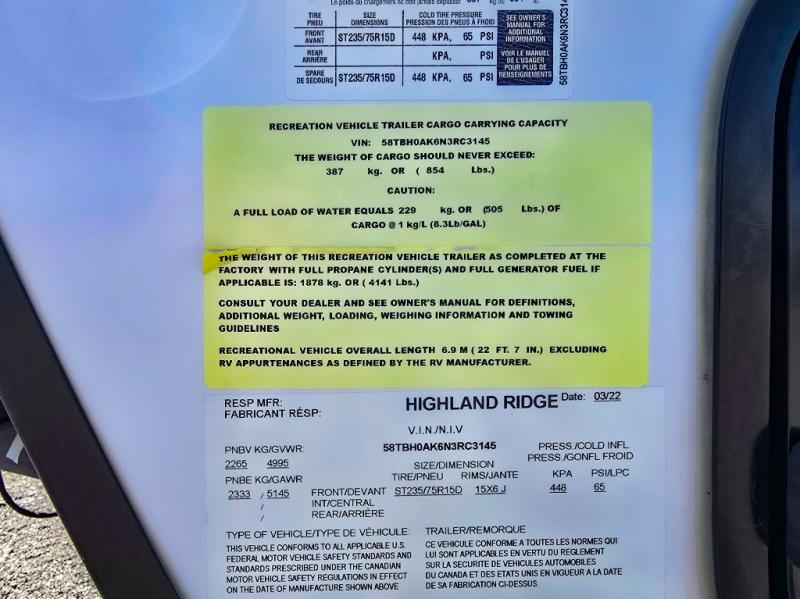 Used 2022 Highland Ridge RV Range Lite Air 18RBS Travel Trailer