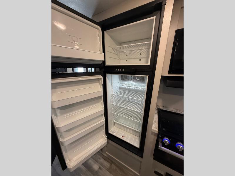 Each one of these Highland Ridge RV Range Lite travel trailers maximize their interior space while staying lightweight thanks to the TuffShell fiberglass walls! The extra-deep slides with residential floors create more walking around space, and the vinyl furniture, no floor heat registers, and residential vinyl flooring throughout makes them kid and pet friendly. A few construction features you will appreciate include a fully-walkable roof, a thermal seal which means the underbelly is enclosed, heated, and insulated, and a fully insulated roof with a PVC roofing membrane. Plus, there is an exterior grill hookup quick connect port, self-adjusting electric brakes to help you safely arrive, and an oversized pass-through storage area with motion lighting. Come find your favorite one today!