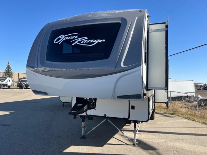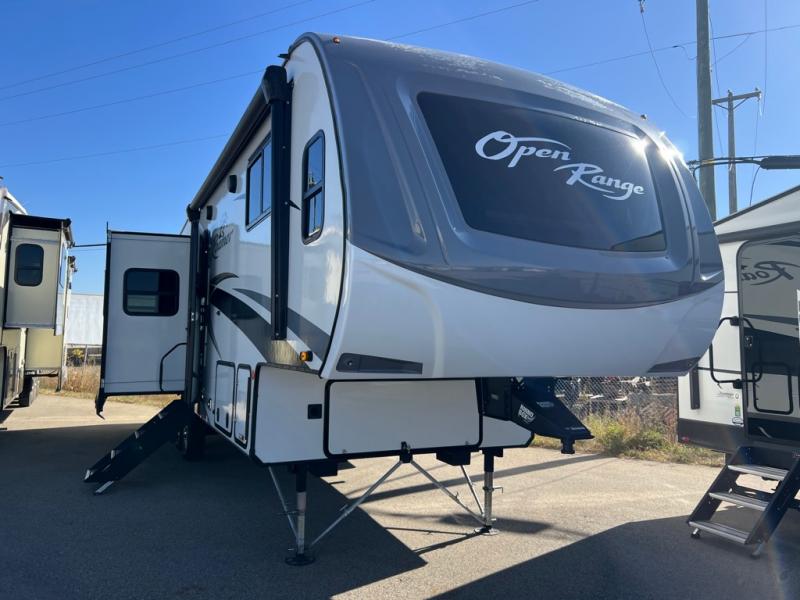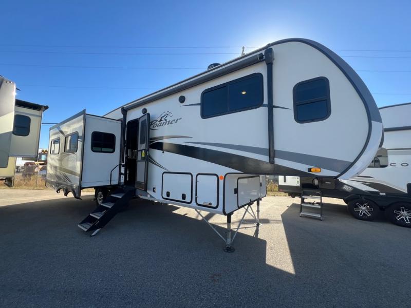 Each one of these Highland Ridge RV Roamer fifth wheels were built for the long haul! They have a TuffShell vacuum bonded laminated construction that is reinforced with heavy-duty fiberglass and welded aluminum frames, plus a PVC roofing membrane. Experience more walking around space with a 100" wide body frame and an ACCU-SLIDE slide system with a 42" deep four corner compression and are flush to the residential vinyl flooring to prevent tripping. The mandatory Four Season package lets you camp all year round with a heated and enclosed underbelly, a high performance furnace, and a R-9 block foam insulation in the sidewalls. You can control your unit at the touch of a finger with the TravelLINK smart RV system that has Bluetooth control of the awnings, lighting, slides, heating, cooling, and auto-levelers. Come find the right one for you today!