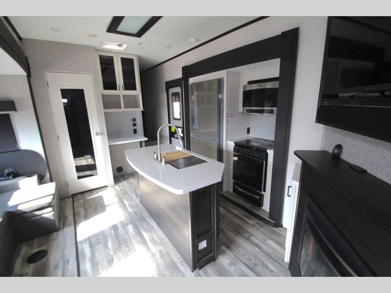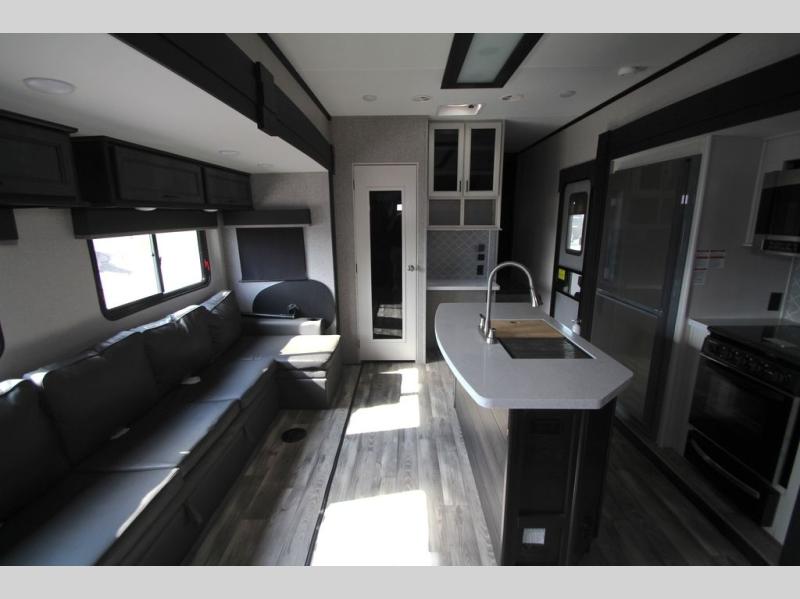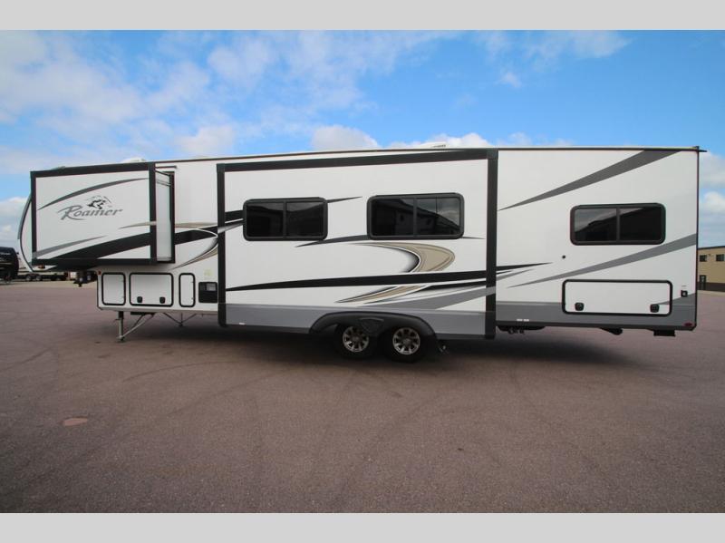 Each one of these Highland Ridge RV Roamer fifth wheels were built for the long haul! They have a TuffShell vacuum bonded laminated construction that is reinforced with heavy-duty fiberglass and welded aluminum frames, plus a PVC roofing membrane. Experience more walking around space with a 100" wide body frame and an ACCU-SLIDE slide system with a 42" deep four corner compression and are flush to the residential vinyl flooring to prevent tripping. The mandatory Four Season package lets you camp all year round with a heated and enclosed underbelly, a high performance furnace, and a R-9 block foam insulation in the sidewalls. You can control your unit at the touch of a finger with the TravelLINK smart RV system that has Bluetooth control of the awnings, lighting, slides, heating, cooling, and auto-levelers. Come find the right one for you today!