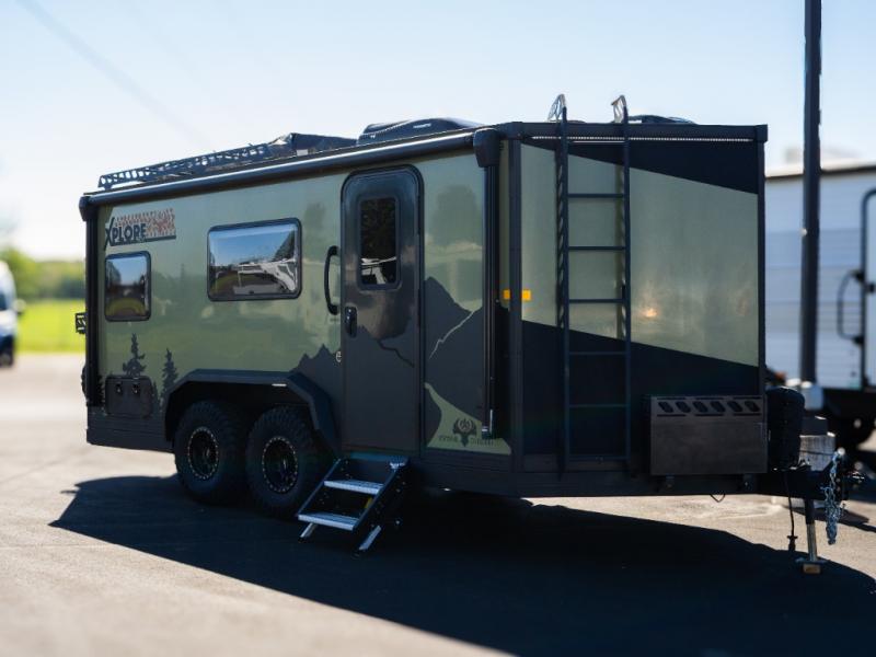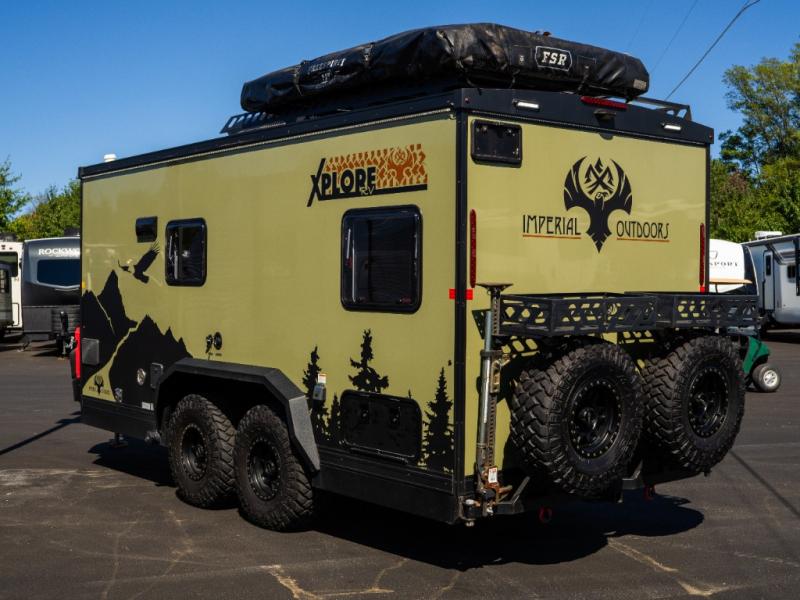 Imperial Outdoors has encompassed the cold weather versatility and cabin-style comforts of a fish house with the rugged capability of a true off-road camper in this XploreRV travel trailer! The chassis has been beefed up with an off-road reinforced, coated steel, and the hydraulic ride adjustment has a 12" ground clearance road height and a 20" off-road ground clearance height. In addition to the standard features and Xtreme package already provided, there are four other optional packages that can be added. The Xtreme package includes an outdoor shower, on-demand hot water, a lock and roll off-road hitch, and an on-board air compressor, plus more!