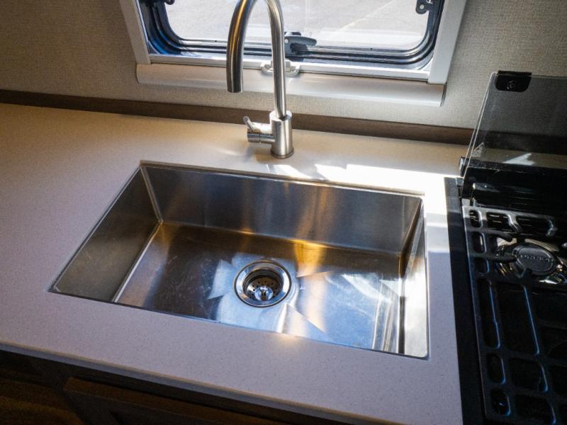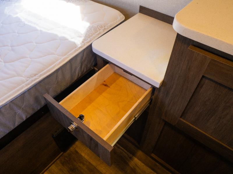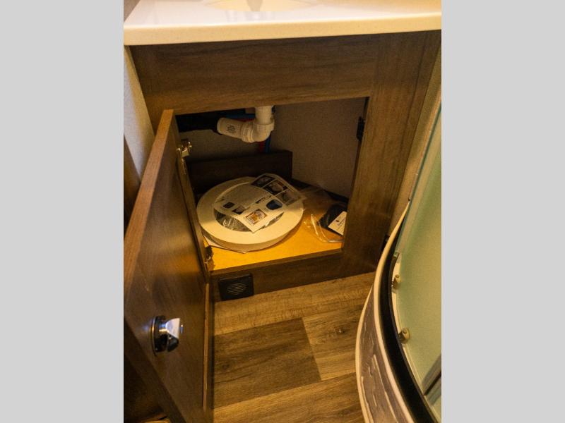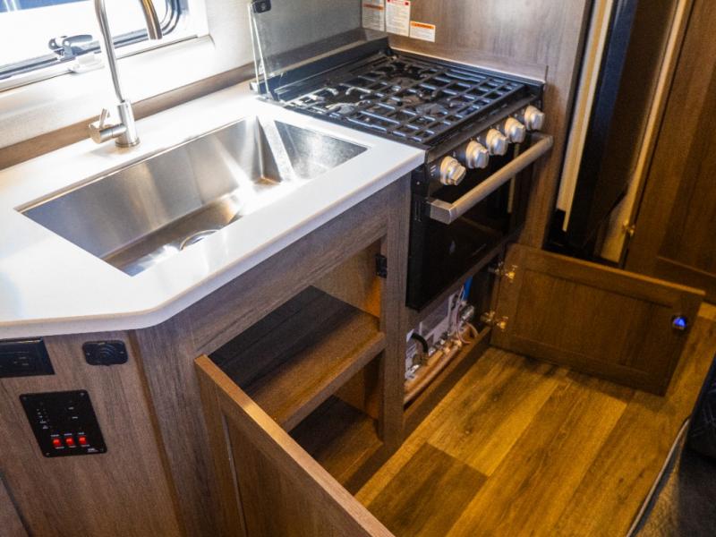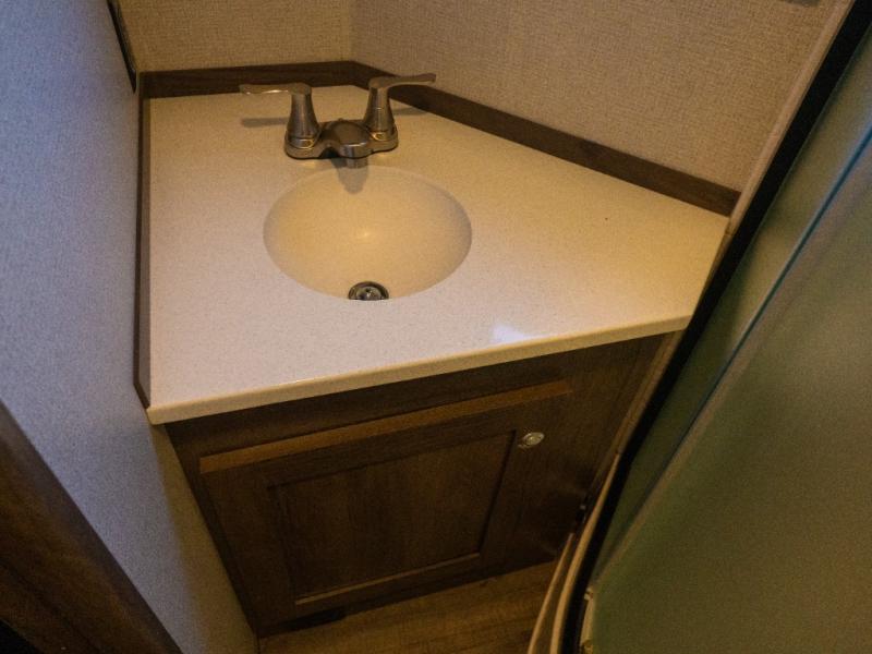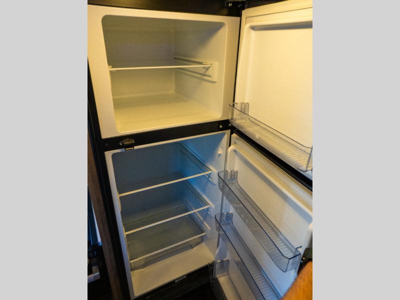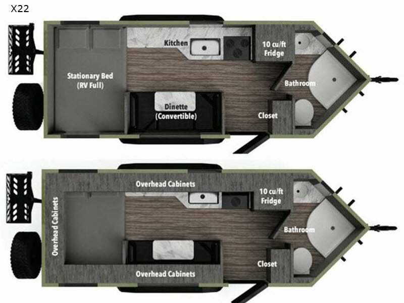 Head off-grid with this travel trailer! It features a full front bathroom with a radius shower to clean up in each morning and a dry flush toilet so you don't have to worry about a black water tank in the back country. Just outside the bathroom is a closet and a 10 cu. ft. refrigerator to keep your perishables fresh. After you have prepared a delicious meal on the three burner cooktop, you can head to the convertible booth dinette to enjoy it there then play a card game or two. The rear full bed is stationary and offers a comfortable nights rest!