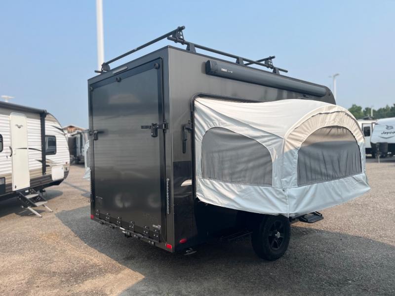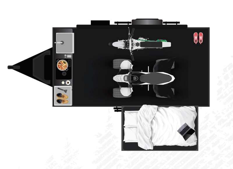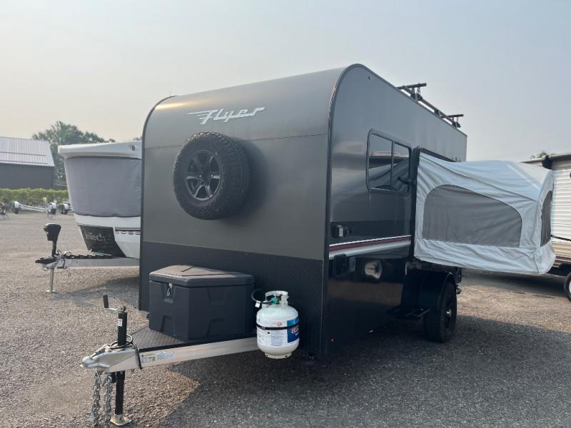The inTech RV Flyer travel trailers and toy haulers are ready for adventure whenever you are! With the all-aluminum, all-tube cage frame, the Flyer has been built with lightweight and long-lasting materials so that you can enjoy your unit for many, many years. The Flyer has a rugged design so that you can confidently explore new territory and go where traditional RVs cannot. The Flyer has a 2" rear receiver rated for 175 pounds which allows you to bring along your bikes, and the front tongue box is the perfect solution for your storage needs because it is easily accessible and out of the interior. The Flyer also comes with a Bluetooth stereo that has two speakers so that you can always have your best music playing, and the list of optional features is going to entice you to make your Flyer even more exceptional. The optional roof rack will allow you to bring along kayaks, and the optional A/C with heat is definitely going to be tempting to add.