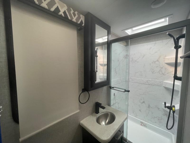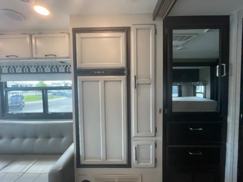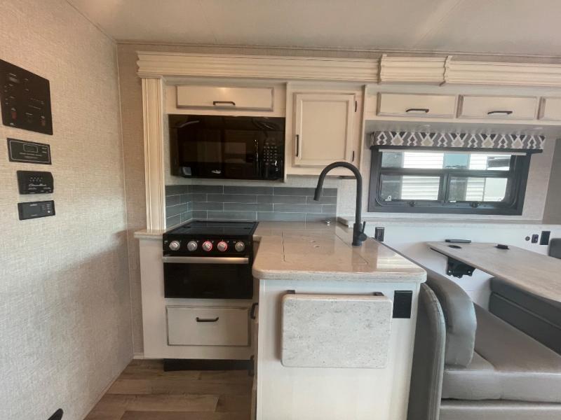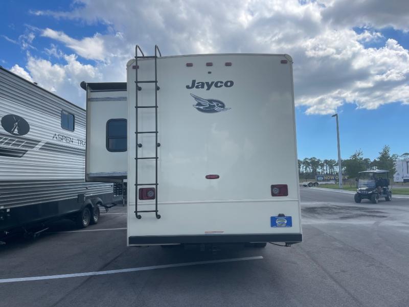 When you enjoy the drive as much as the destination, you know you made the correct choice for your adventures! The driver and passenger seats also swivel to create more seating when you are parked. And the Jayco-exclusive, easy operation legless dinette plus jack-knife sofa give everyone a place to relax and visit. You will also find sleeping space for five to six when you utilize the furniture and you choose the drop down overhead bunk option. The rear corner bedroom gives you a king bed, two wardrobes, and a full bathroom just a few steps away. The kitchen offers full amenities including a countertop extension, and you might like to choose the 12 cu. ft. refrigerator option. Don't forget about the outside entertainment center, and the 39" LED HD Smart Fire TV inside when you want to watch a show, a movie or the big game.