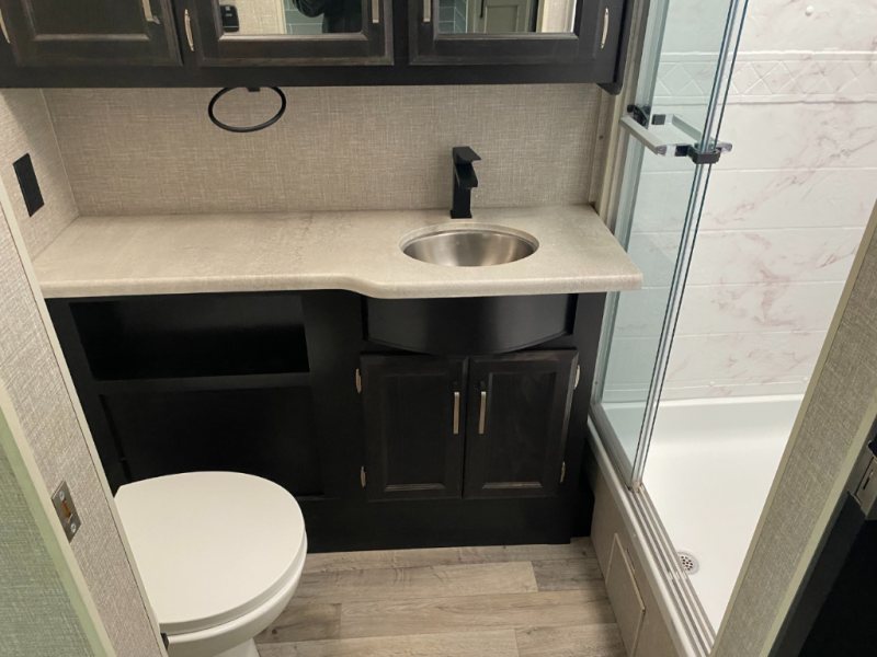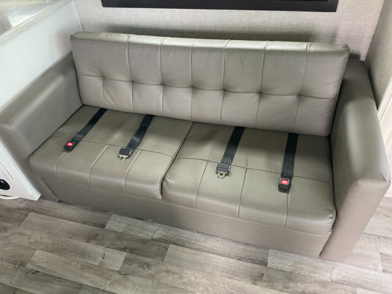 Travel to see new places and enjoy interior comforts as well as outdoor entertainment with this coach! After easily setting up the 23' electric awning you can relax and unwind while taking in the scenery or watching the the exterior LED TV. The chef can utilize the outside kitchen or the full kitchen amenities inside such as an 8 cu. ft. refrigerator or choose the 12 cu. ft. option, the Furrion all-in-one cooktop and oven, plus a residential-size microwave, and there is a pop-up charging center. Enjoy privacy in the rear bedroom while you sleep on the walk-around queen bed, and add the TV option if you like. You will find seating in the main area on the Jayco-exclusive easy-operation legless dinette table, and the sofa or choose the theater seating option, and the cockpit table gives you another surface to place your things while you sit in the driver and passenger seats that swivel. And maybe you add the drop down overhead bunk option for more sleeping space, it's your choice.