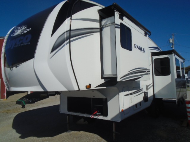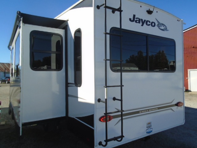 Experience a comfortable tow with every one of these Jayco Eagle HT fifth wheels and travel trailers! They are built with a Stronghold VBL aluminum frame, vacuum bond laminated gel-coated fiberglass exterior walls, and a Magnum Truss roof system with a one piece, seamless DiFlex II material that has been tested as the strongest roof in the industry. The HELIX cooling system comes with an exterior mounted 15,000 BTU "Whisper Quiet" A/C unit, Jayco exclusive insulated dual duct design, directional and closeable A/C vents, and larger air vents with user accessible filters so you can stay cool even on the hottest summer day. With a mandatory Luxury package, you will get handy features like the JAYCOMMAND smart RV system to control your unit at the touch of a finger, an electric auto-leveling so you can set up quick and easy, and blackout roller shades for added privacy. Come find the right one for you today!