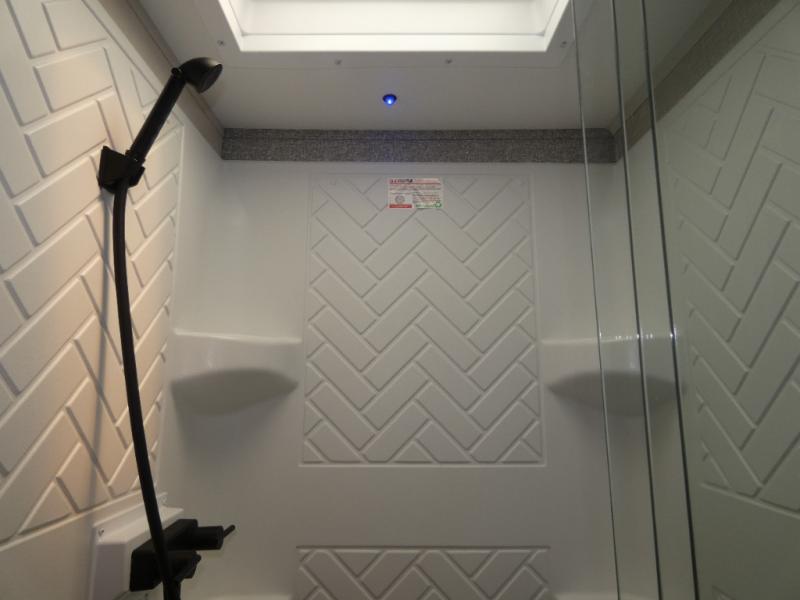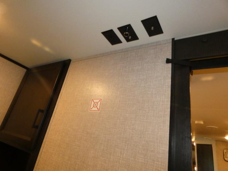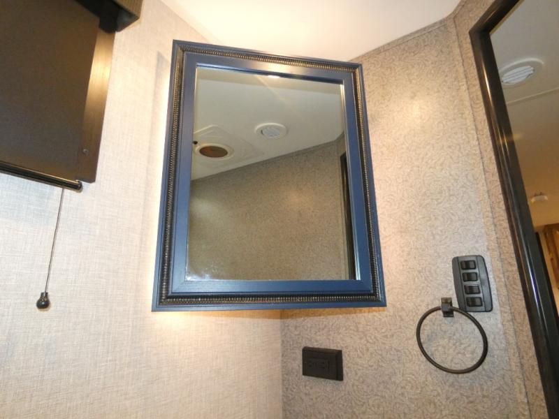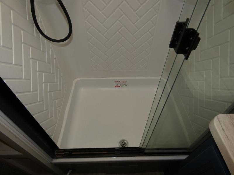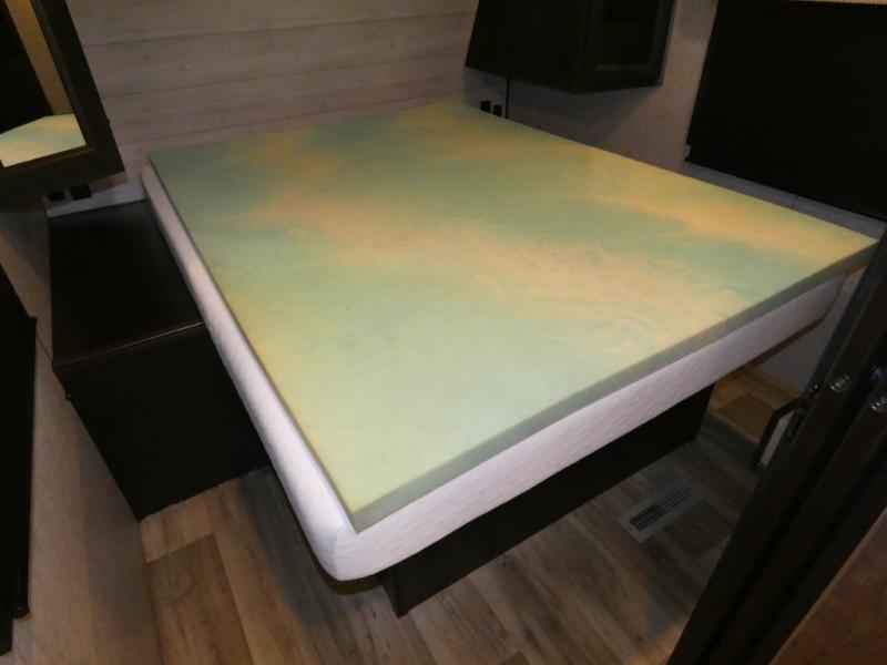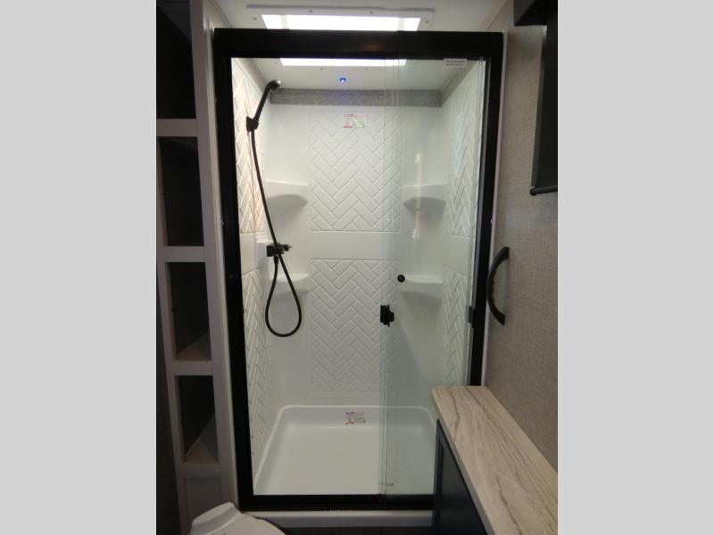 There's a lot to love about this travel trailer! From the set of 48" x 80" bunk beds with storage in the steps to the walk-in pantry behind the swing-out entertainment center with a fireplace for a cozy evening indoors. Everyone can freshen up in the rear corner bathroom with the shower, keep their towel close by with the linen closet, and have plenty of countertop space to get ready in the mornings. The tri-fold sofa and U-shaped dinette slide offer comfortable places to sit, dine, and play games, as well as transform into extra sleeping spaces. The front private bedroom has a queen bed with wardrobes on either side and another wardrobe to keep your clothes looking their best. You even have an outside kitchen to cook your meals at while watching others play a game of cornhole!