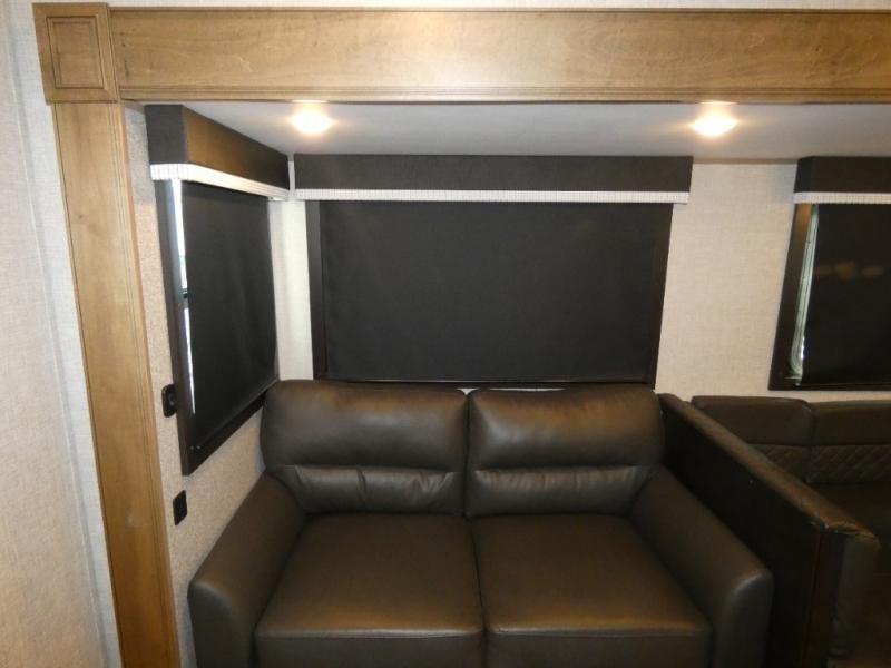 Experience a comfortable tow with every one of these Jayco Eagle HT fifth wheels and travel trailers! They are built with a Stronghold VBL aluminum frame, vacuum bond laminated gel-coated fiberglass exterior walls, and a Magnum Truss roof system with a one piece, seamless DiFlex II material that has been tested as the strongest roof in the industry. The HELIX cooling system comes with an exterior mounted 15,000 BTU "Whisper Quiet" A/C unit, Jayco exclusive insulated dual duct design, directional and closeable A/C vents, and larger air vents with user accessible filters so you can stay cool even on the hottest summer day. With a mandatory Luxury package, you will get handy features like the JAYCOMMAND smart RV system to control your unit at the touch of a finger, an electric auto-leveling so you can set up quick and easy, and blackout roller shades for added privacy. Come find the right one for you today!