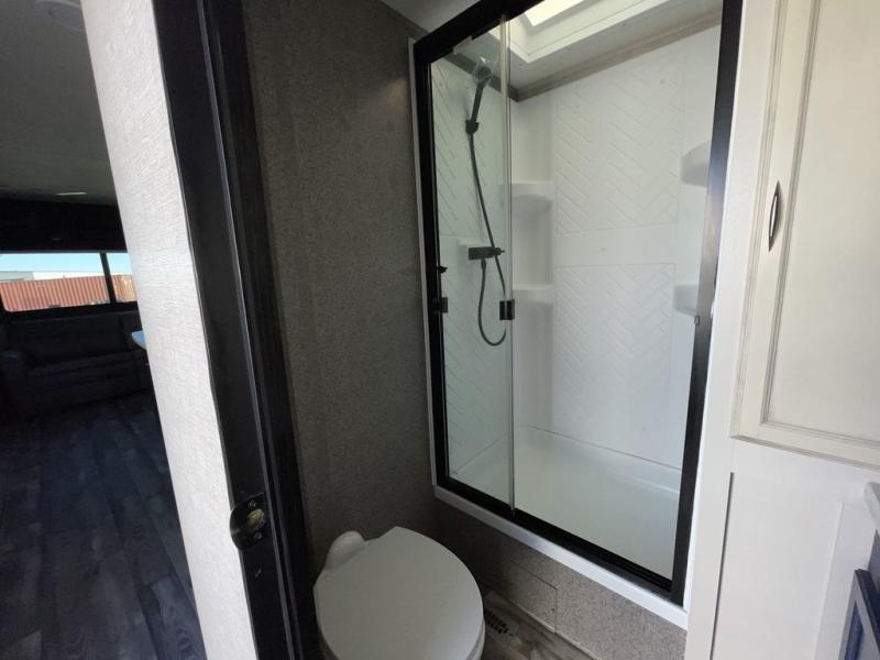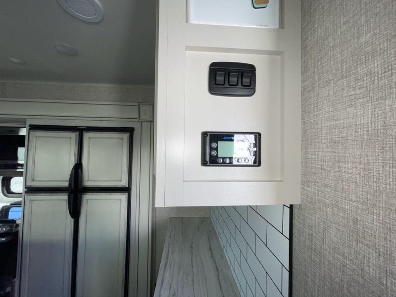 Experience a comfortable tow with every one of these Jayco Eagle HT fifth wheels and travel trailers! They are built with a Stronghold VBL aluminum frame, vacuum bond laminated gel-coated fiberglass exterior walls, and a Magnum Truss roof system with a one piece, seamless DiFlex II material that has been tested as the strongest roof in the industry. The HELIX cooling system comes with an exterior mounted 15,000 BTU "Whisper Quiet" A/C unit, Jayco exclusive insulated dual duct design, directional and closeable A/C vents, and larger air vents with user accessible filters so you can stay cool even on the hottest summer day. With a mandatory Luxury package, you will get handy features like the JAYCOMMAND smart RV system to control your unit at the touch of a finger, an electric auto-leveling so you can set up quick and easy, and blackout roller shades for added privacy. Come find the right one for you today!