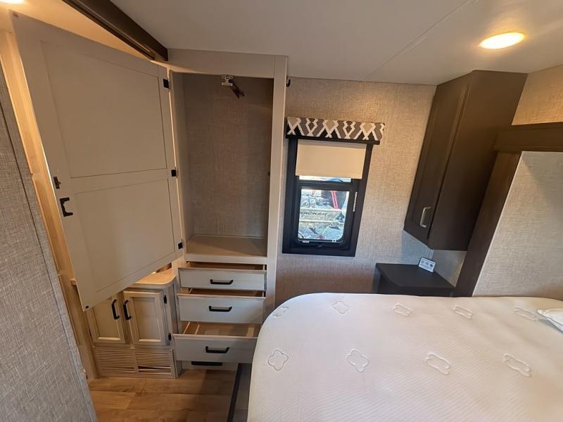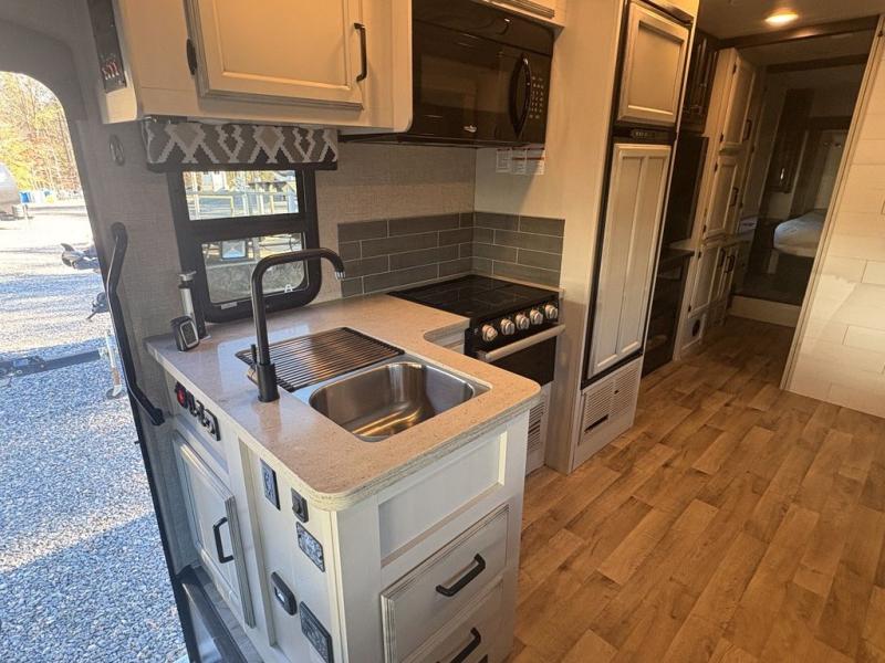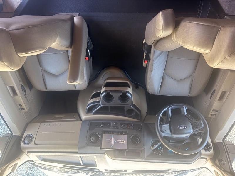 With any Greyhawk Class C gas motorhome by Jayco you will experience smooth sailing thanks to the JRIDE PLUS that comes with Koni shock absorbers, a computer-balanced driveshaft, Hellwig helper springs, and more. The Ford E-450 chassis with a 7.3L V8 350 HP engine will power your excursions, and you'll appreciate the added safety features for your peace of mind. Each model features a Sony infotainment center with Apple CarPlay and Android Auto, backup and side-view cameras, and a tire pressure monitor system the driver is sure to appreciate. Durable construction begins with Stronghold VBL roof, floor and sidewalls, bead-foam insulation, and a one-piece seamless fiberglass front cap. Head inside to find blackout night roller shades, LED-lit pressed countertops, an 84" interior ceiling height, and hardwood cabinet doors and drawers.