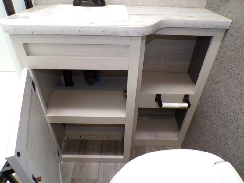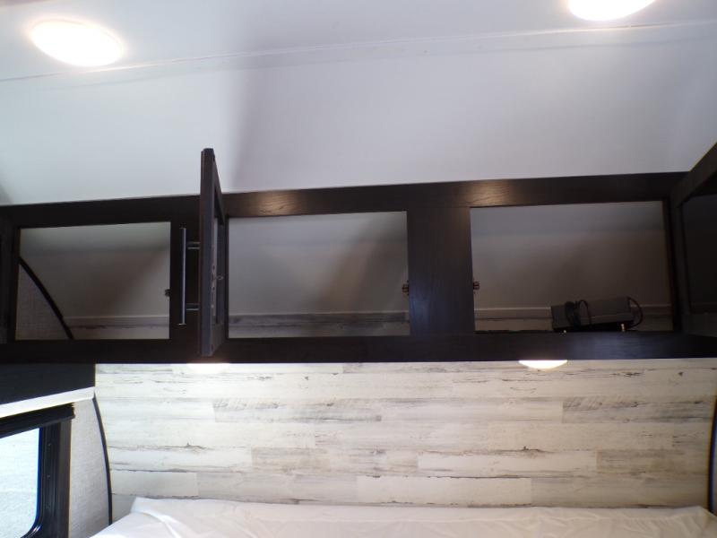 If you've been looking for a lightweight travel trailer with more sleeping space, your search is over with this model! There are bunk beds in the back near the full bath for convenience, a front queen bed, plus a booth dinette that will double as dining and sleeping space. This model also includes overhead compartments for your belongings, plus exterior storage for you fishing poles or tackle boxes.