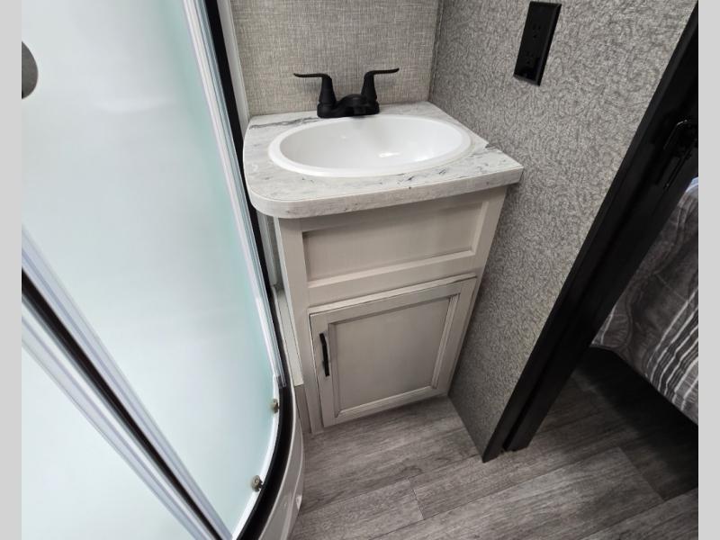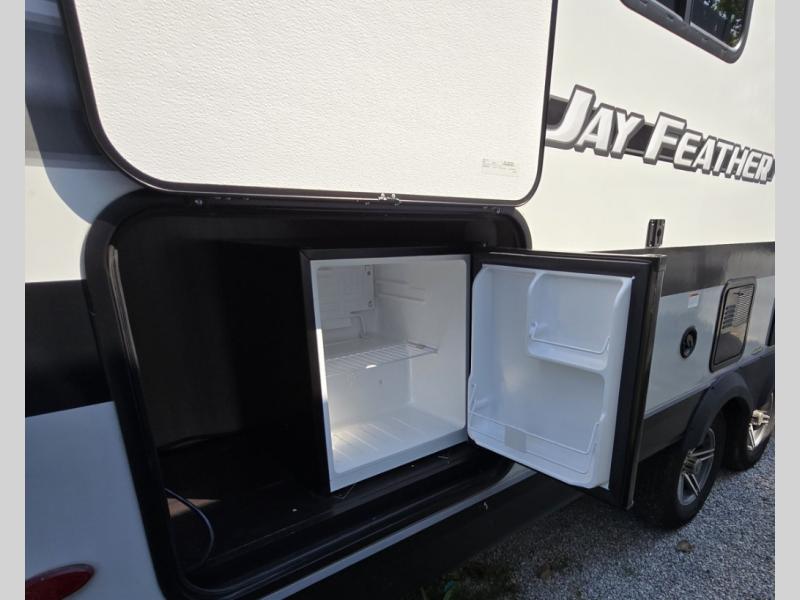 With any Jay Feather travel trailer by Jayco, you will experience an easy-to-tow, lightweight dual axle RV that is built on an American-made frame with an aerodynamic, rounded front profile with a diamond plate to protect against road debris, and includes Azdel composite in the perimeter walls, and Stronghold VBL vacuum-bonded, laminated floor and walls, plus the Magnum Truss roof system. Also included are features in the Customer Value package, and the Sport package which offers aluminum tread entry steps, roof-mount solar prep, an LED TV, and the Glacier package which includes an enclosed underbelly. The interior provides residential-style kitchen countertops with a decorative backsplash, residential plank-style vinyl flooring for easy care, a decorative wallboard for style, and ball-bearing drawer guides with 75 lb. capacity to mention a few of the amenities. Choose your favorite today!