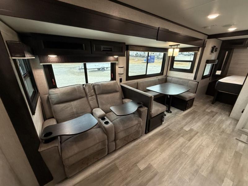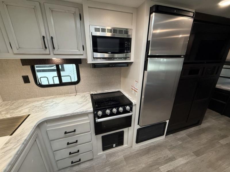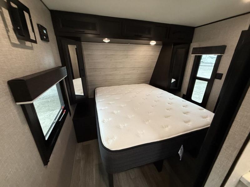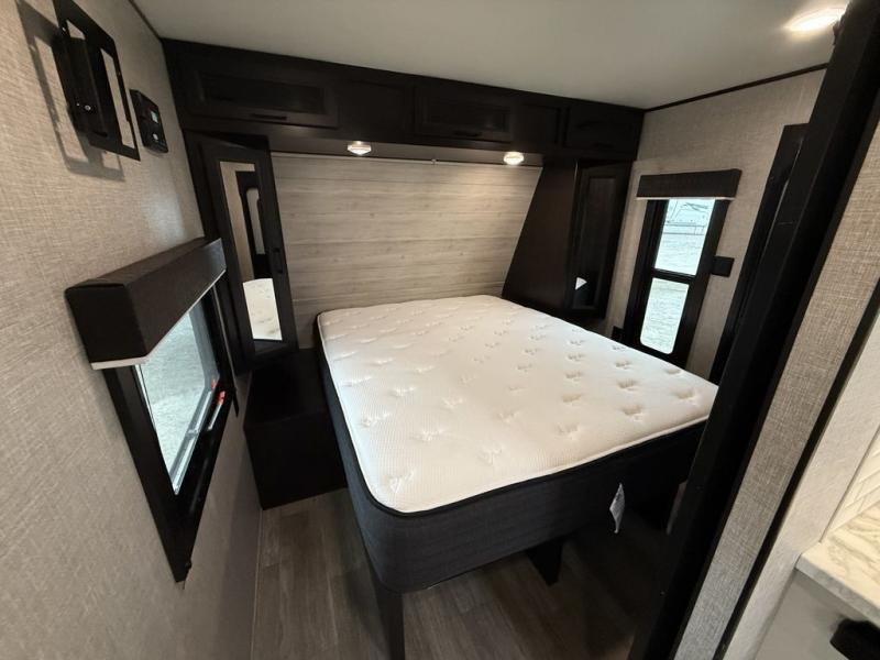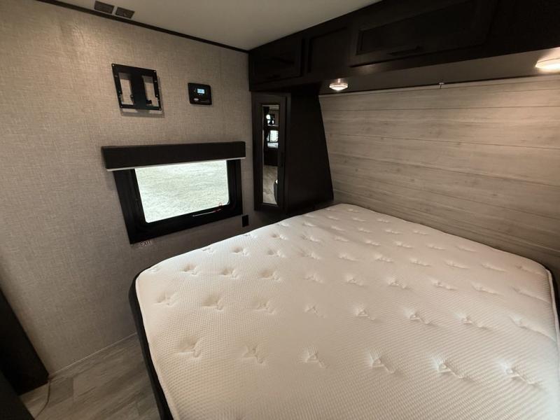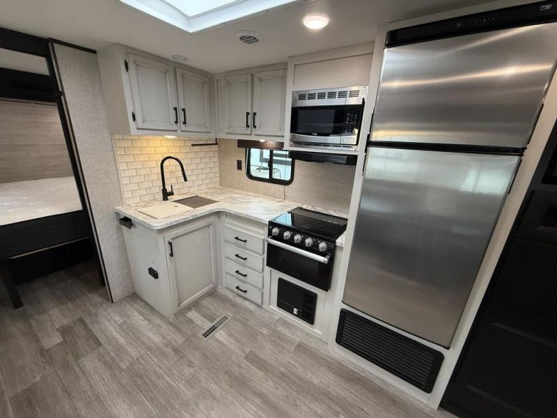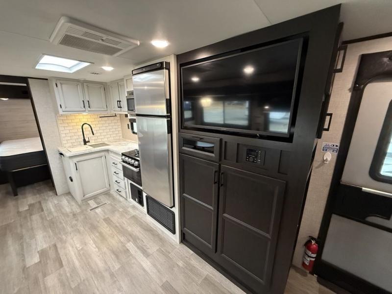 Check out the #1-selling Jayco Jay flight travel trailer! These trailers are built upon I-Class™ cambered structural steel I-beams and a fully integrated A-frame. They have axles with electric, self-adjusting brakes and easy-lube hubs to make your journeys smooth, and the Magnum Truss roof system will withstand many years and types of travel. You'll have large exterior downspouts, a front diamond plate, four stabilizer jacks, and a friction-hinge entry door with shade-prep window. The interior is where you'll find great comfort and modern design. There are residential-style kitchen countertops, solid hardwood cabinet doors, a premium multimedia sound system, a full-height kitchen backsplash, a kitchen skylight with shade, and a deluxe bedspread with pillows.