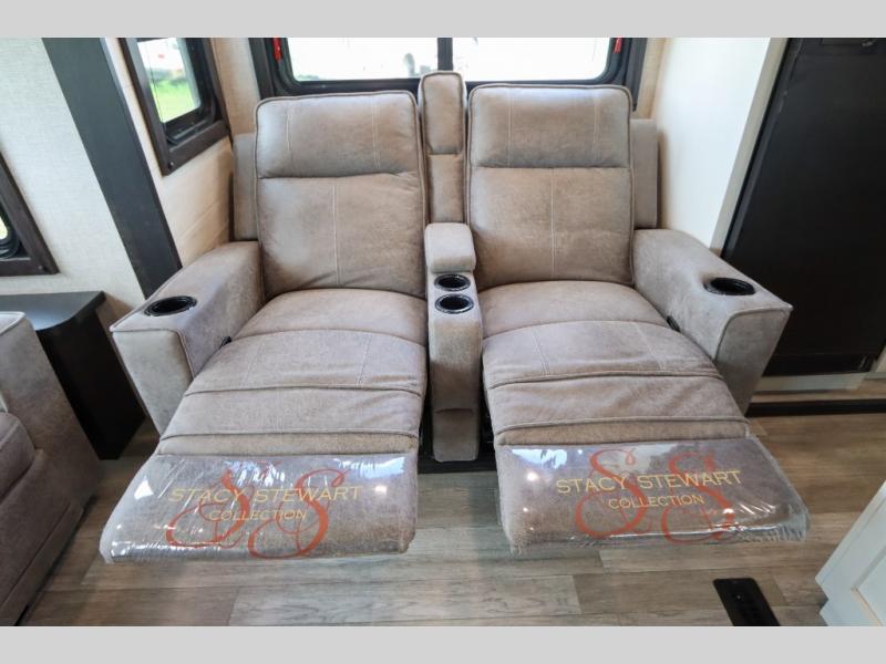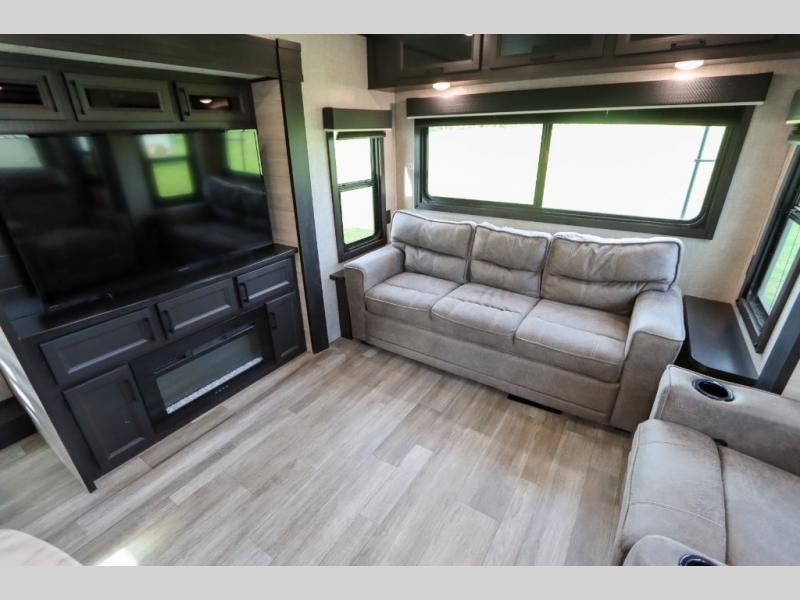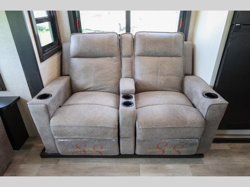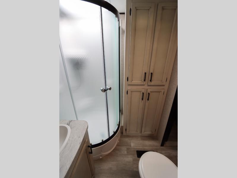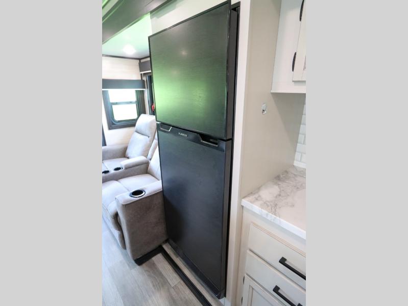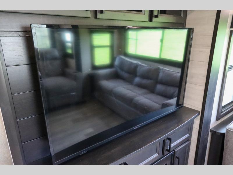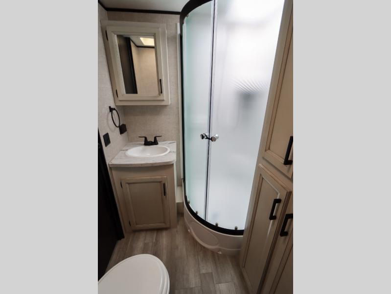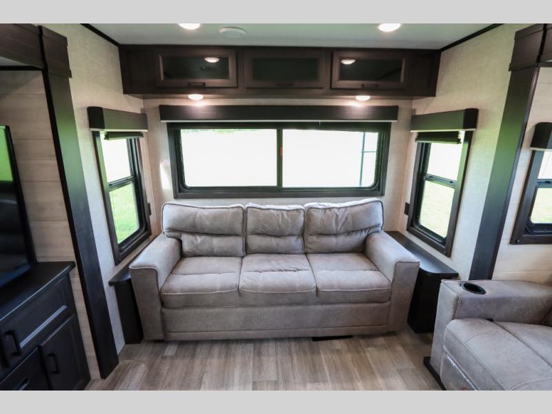 When you travel in the fall or winter, the fireplace on this Jay Flight travel trailer is going to be your favorite feature! It sits below the entertainment center, and both items are across from the theater seating. You'll also have a jackknife sofa right there so that others can join in on the relaxation. A kitchen island adds function to the kitchen, and it also serves as a great dishwashing station. You can cook just about anything on the three-burner range, and the pantry will help you store your snacks. The free-standing table with chairs makes meal time feel like it does at home, and the dual-entry bathroom can be accessed from the main hallway or the front bedroom.