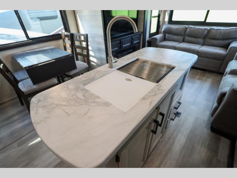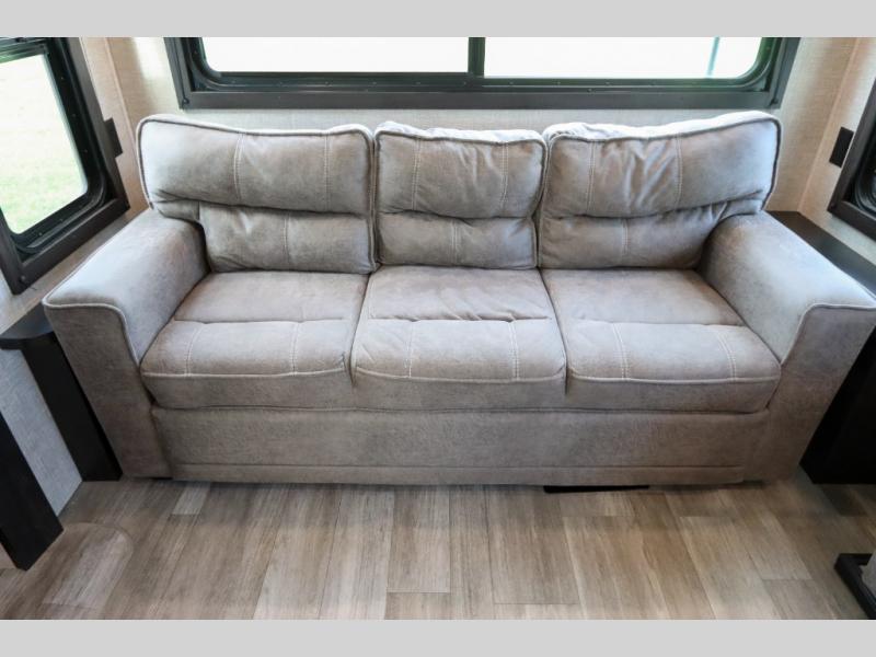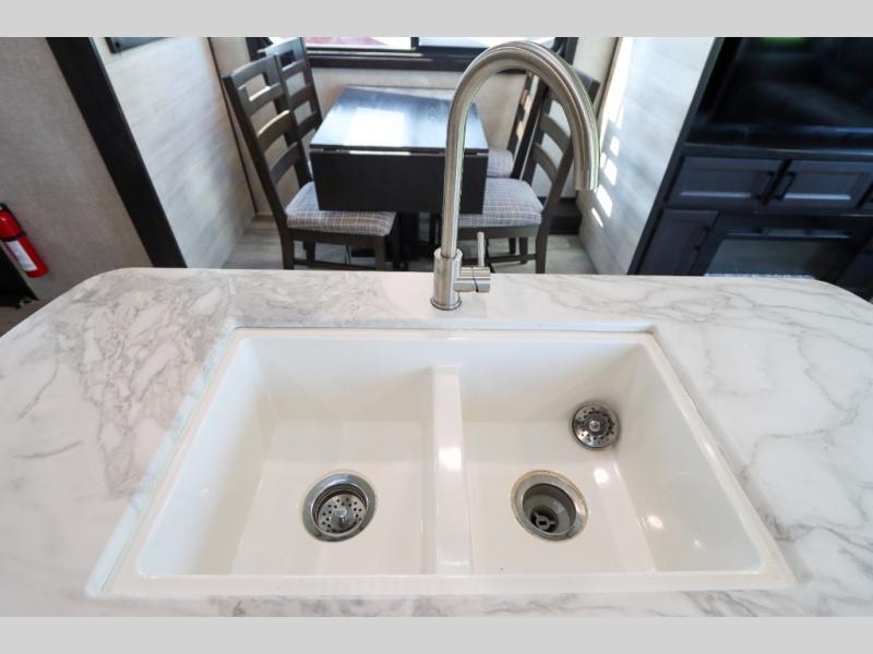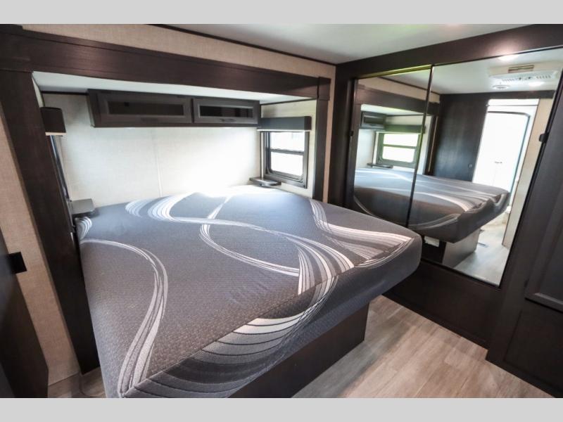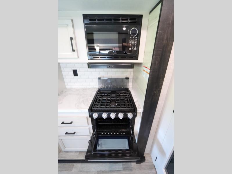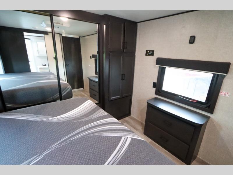 Check out the #1-selling Jayco Jay flight travel trailer! These trailers are built upon I-Class™ cambered structural steel I-beams and a fully integrated A-frame. They have axles with electric, self-adjusting brakes and easy-lube hubs to make your journeys smooth, and the Magnum Truss roof system will withstand many years and types of travel. You'll have large exterior downspouts, a front diamond plate, four stabilizer jacks, and a friction-hinge entry door with shade-prep window. The interior is where you'll find great comfort and modern design. There are residential-style kitchen countertops, solid hardwood cabinet doors, a premium multimedia sound system, a full-height kitchen backsplash, a kitchen skylight with shade, and a deluxe bedspread with pillows.