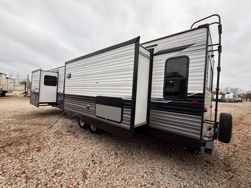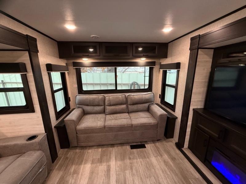 FREE DELIVERY & SETUP!! THIS BEAUTIFUL LIKE NEW 2022 JAYCO JAY FLIGHT 34RSBS IS A RV LOADED WITH LUXURY!! 37 LONG. 3 SLIDES. XL REAR LIVING WITH MASTER SUITE WITH WASHER/DRYER. BEAUTIFUL BATHROOM & CLOSET. LARGE LIVING AREA WITH THEATER SEATING & UPGRADED SLEEPER SOFAS. ELECTRIC FIREPLACE & BIG FLAT SCREEN TV. BEAUTIFUL KITCHEN with residential refrigerator, STAINLESS STEEL APPLIANCES, and LOTS OF CABINET STORAGE. FULLY ENCLOSED & HEATED UNDERBELLY. 4 SEASONS PACKAGE WITH UPGRADED INSULATION. DESIGNED FOR YEAR-ROUND COMFORT IN HOT OR COLD CLIMATES. KING SATELLITE. 2 COLD A/C UNITS. 50AMP POWER. AUTO-LEVELING SYSTEM. HUGE BASEMENT STORAGE SOLID STEP ENTRY. DUAL AWNINGS WITH LED LIGHTS. LUXURY FEEL THROUGHOUT!!, OUTDOOR STORAGE. UVW 7915. FACTORY SOLAR. OUR PRICE: $29,995. WE HAVE MULTIPLE RV'S & FIFTH WHEELS TO CHOOSE FROM!! We are located in KENNEDALE, TX. We show RVs 7 DAYS A WEEK BY APPOINTMENT. Call BRET 8178050067 or AMY 8176584633. FREE DELIVERY TO ALL 48 STATES.WE INSPECT & GO THROUGH ALL TRAILERS TO ENSURE OUR CUSTOMERS ARE 100% SATISFIED.¡SE HABLA ESPAÑOL!