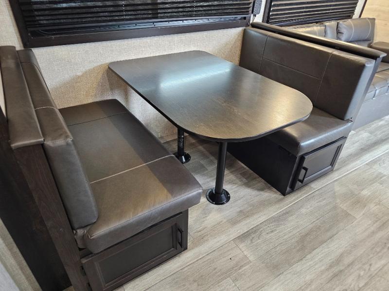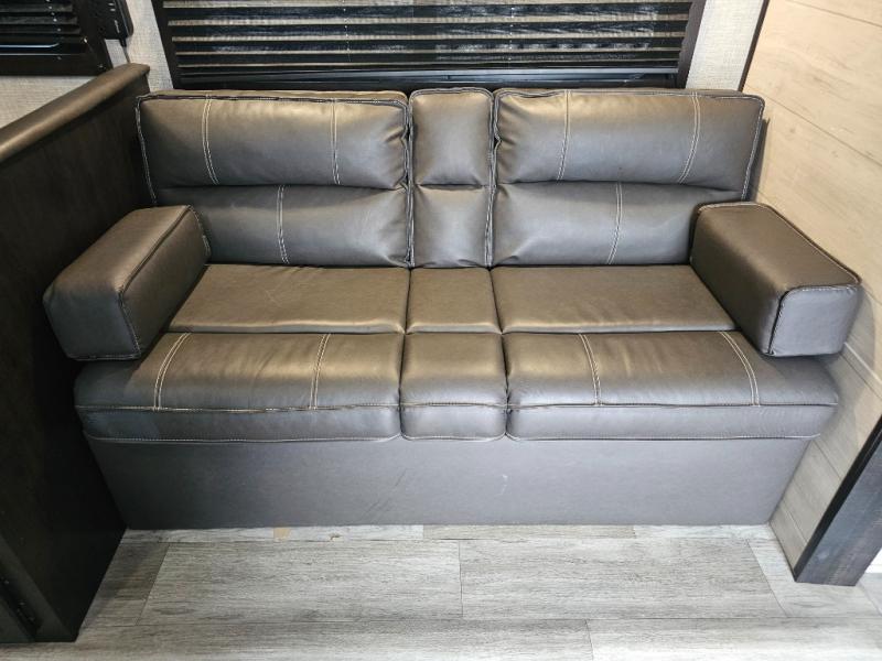 Booth dinette and sofa offer comfortable seating for meals or game nights