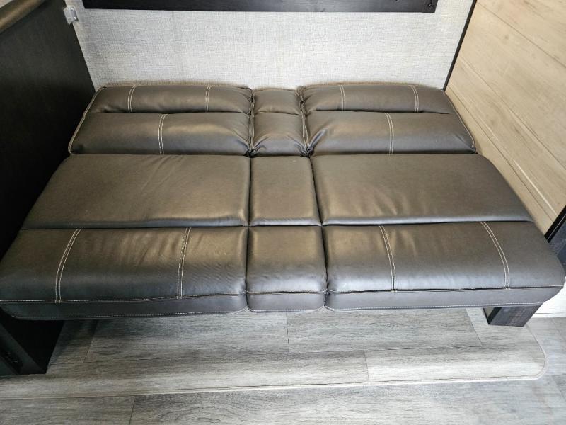 Jack-knife sofa and booth dinette convert into extra sleeping space