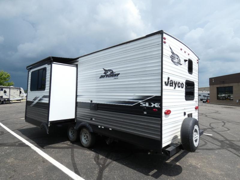 With any Jay Flight SLX 8 travel trailer by Jayco, you will have a durable foundation with l-Class cambered structural steel l-beams, a fully-integrated A-frame, seamless roof material and a Magnum Truss Roof System with plywood decking for a 50% stronger roof than any other in the industry. Also included are Goodyear Endurance tires made in the USA, and a front diamond plate to protect against road debris. Inside, you will love the fresh interior design, the solid hardwood cabinet doors, the 81-inch tall ceiling, the energy-saving LED lighting, and the storage. Whether you are looking for an RV for a small or large group, you will find a Jay Flight SLX 8 to fit your camping lifestyle!