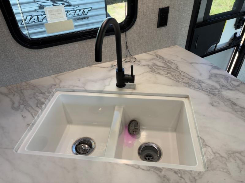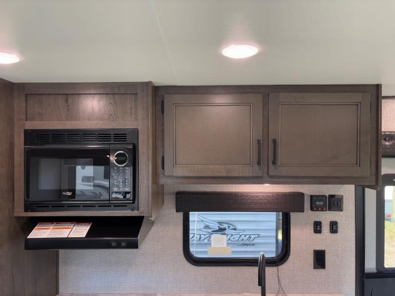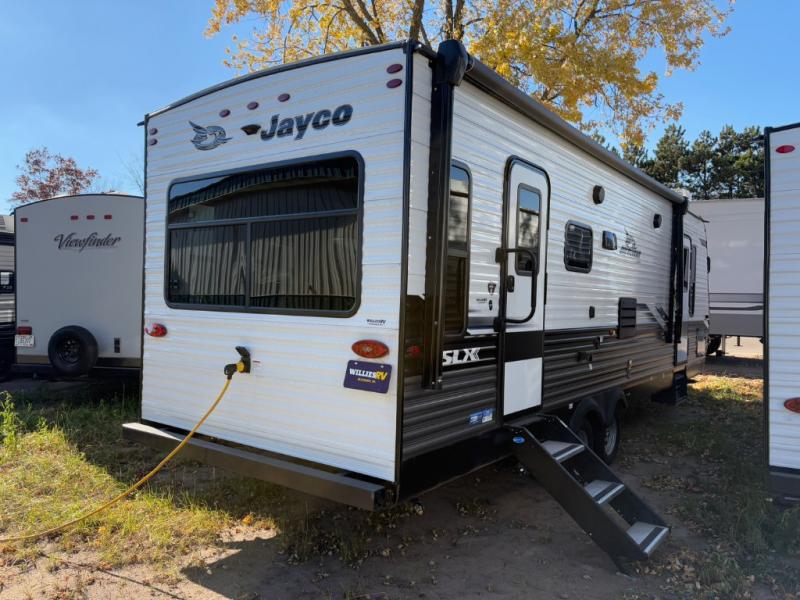 With any Jay Flight SLX 8 travel trailer by Jayco, you will have a durable foundation with l-Class cambered structural steel l-beams, a fully-integrated A-frame, seamless roof material and a Magnum Truss Roof System with plywood decking for a 50% stronger roof than any other in the industry. Also included are Goodyear Endurance tires made in the USA, and a front diamond plate to protect against road debris. Inside, you will love the fresh interior design, the solid hardwood cabinet doors, the 81-inch tall ceiling, the energy-saving LED lighting, and the storage. Whether you are looking for an RV for a small or large group, you will find a Jay Flight SLX 8 to fit your camping lifestyle!