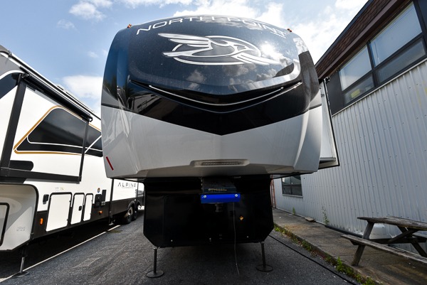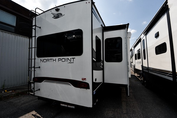 With any North Point fifth wheel by Jayco you begin with a strong foundation with a custom frame, designed and sized specifically to best support each unit. Constructed with Stronghold VBL™ aluminum framed, vacuum bond laminated walls and the Magnum Truss™ XL6™ roof system with a one-piece, seamless DiFlex II material which is the strongest tested roof in the industry. The 5-Star Handling package is included with Goodyear Endurance tires made in the USA, a MORryde rubber pin box, Dexter axles with Nev-R-Adjust brakes, MORryde CRE-3000 rubberized suspension and wet bolt fasteners and bronze bushings. The interior has handcrafted hardwood glazed doors, drawers and trim, vinyl flooring throughout made in the USA including on slide out floors, a residential bathroom backsplash and vessel bowl sink in the main bathroom, plus so much more you just have to see one to believe it all!