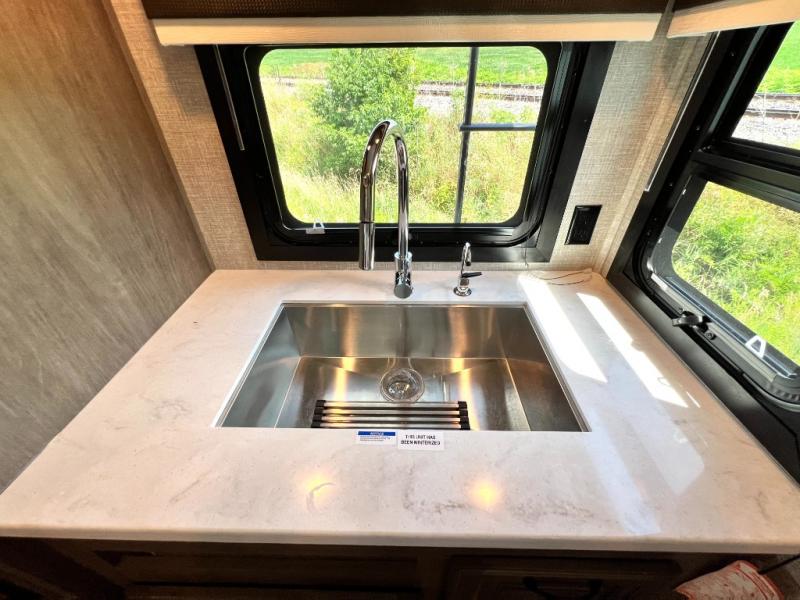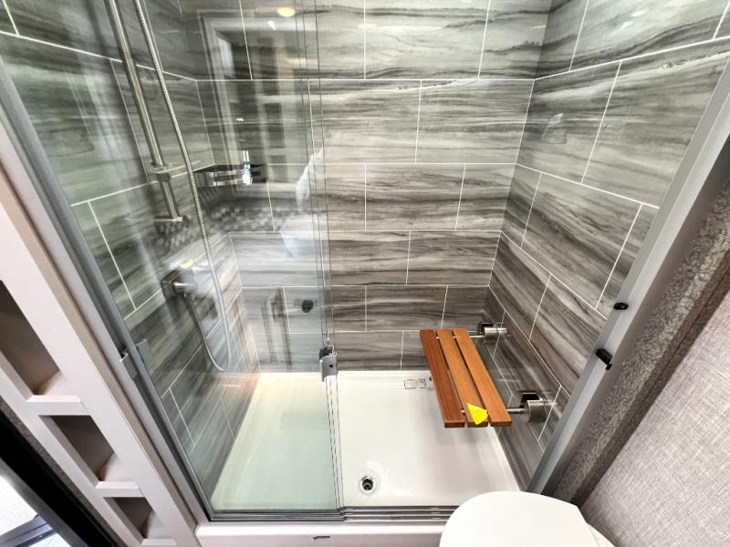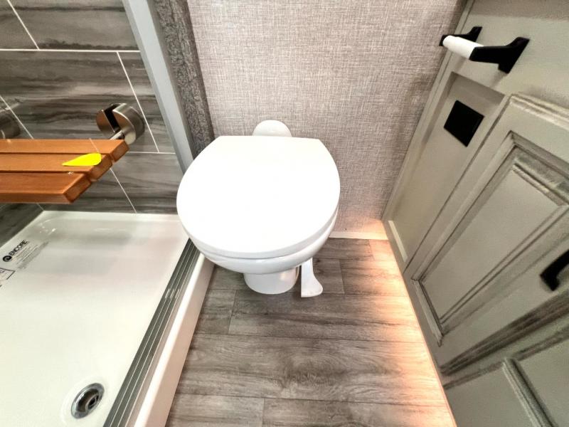 With any North Point fifth wheel by Jayco you begin with a strong foundation with a custom frame, designed and sized specifically to best support each unit. Constructed with Stronghold VBL™ aluminum framed, vacuum bond laminated walls and the Magnum Truss™ XL6™ roof system with a one-piece, seamless DiFlex II material which is the strongest tested roof in the industry. The 5-Star Handling package is included with Goodyear Endurance tires made in the USA, a MORryde rubber pin box, Dexter axles with Nev-R-Adjust brakes, MORryde CRE-3000 rubberized suspension and wet bolt fasteners and bronze bushings. The interior has handcrafted hardwood glazed doors, drawers and trim, vinyl flooring throughout made in the USA including on slide out floors, a residential bathroom backsplash and vessel bowl sink in the main bathroom, plus so much more you just have to see one to believe it all!