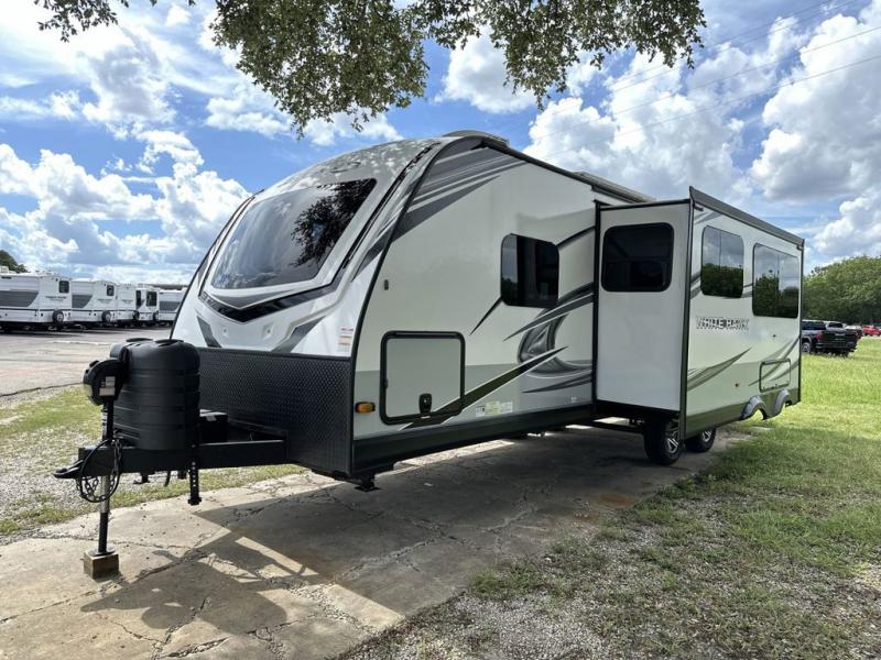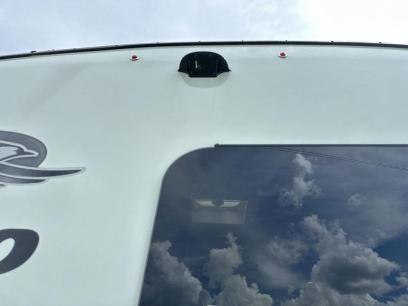 The lightweight White Hawk travel trailers by Jayco will blow you away with their roomy interiors, luxurious amenities, and durable construction. The Magnum Truss Roof System can withstand 50% more weight than the competition, and the Stronghold VBL lamination is the lightest, yet strongest in the industry. Each model includes the JAYCOMMAND "Smart RV" system with a tire pressure monitor system, plus American-made Goodyear tires for maximum durability and carrying capacity. You will love the sleek look of the front molded fiberglass cap with an automotive windshield and blue LED accent lighting, along with the frameless windows and automotive-style aluminum rims. The White Hawk travel trailers also include an arched interior ceiling, a kitchen skylight with a shade, residential vinyl flooring with cold crack resistance, and an electric fireplace.