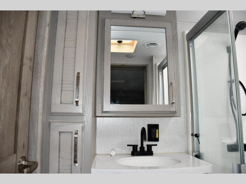 This model is ideal for couples or small families who want high-end features and full-time living potential. With abundant storage, multiple seating and sleeping options, and luxury touches throughout, you’ll have everything you need to live or travel comfortably on the road.