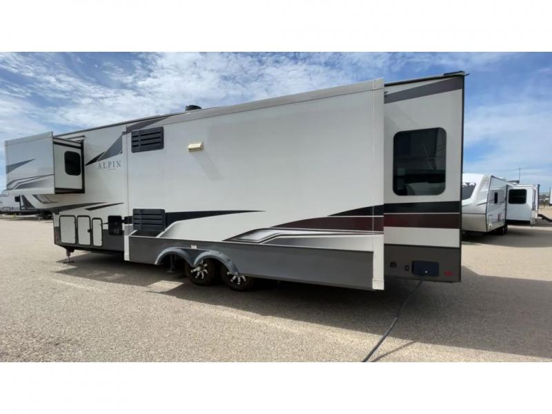 Luxury is not an option, it is a standard with each one of these Keystone RV Alpine fifth wheels! A 100" wide body construction, almost 7' tall slides, high ceilings, and panoramic frameless windows create an open, residential feeling. The Tru-Fit slide construction is more durable and minimizes motor structural stress, as well as resists leaking. Exclusive 12V color-coded wiring is different from conventional RV wiring in that it is easy to trace and clearly labeled to help savvy owners with DIY diagnosis/repair and helps dealer service techs troubleshoot/repair quickly which saves you time and money. The in-floor heat vents run straight through the unit and are typically positioned in low-traffic areas just like in your home for a more efficient air flow, plus it helps to keep the cabinet storage space. Come find your favorite model today!