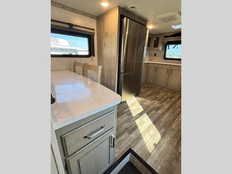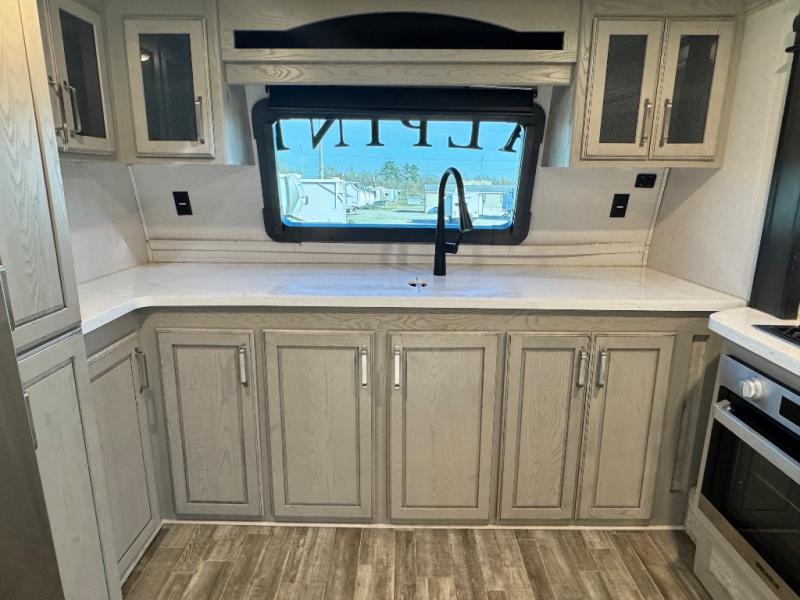 Luxury is not an option, it is a standard with each one of these Keystone RV Alpine fifth wheels! A 100" wide body construction, almost 7' tall slides, high ceilings, and panoramic frameless windows create an open, residential feeling. The Tru-Fit slide construction is more durable and minimizes motor structural stress, as well as resists leaking. Exclusive 12V color-coded wiring is different from conventional RV wiring in that it is easy to trace and clearly labeled to help savvy owners with DIY diagnosis/repair and helps dealer service techs troubleshoot/repair quickly which saves you time and money. The in-floor heat vents run straight through the unit and are typically positioned in low-traffic areas just like in your home for a more efficient air flow, plus it helps to keep the cabinet storage space. Come find your favorite model today!
