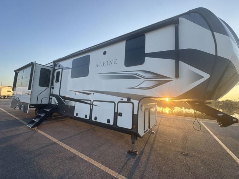 Luxury is not an option, it is a standard with each one of these Keystone RV Alpine fifth wheels! A 100" wide body construction, almost 7' tall slides, high ceilings, and panoramic frameless windows create an open, residential feeling. The Tru-Fit slide construction is more durable and minimizes motor structural stress, as well as resists leaking. Exclusive 12V color-coded wiring is different from conventional RV wiring in that it is easy to trace and clearly labeled to help savvy owners with DIY diagnosis/repair and helps dealer service techs troubleshoot/repair quickly which saves you time and money. The in-floor heat vents run straight through the unit and are typically positioned in low-traffic areas just like in your home for a more efficient air flow, plus it helps to keep the cabinet storage space. Come find your favorite model today!