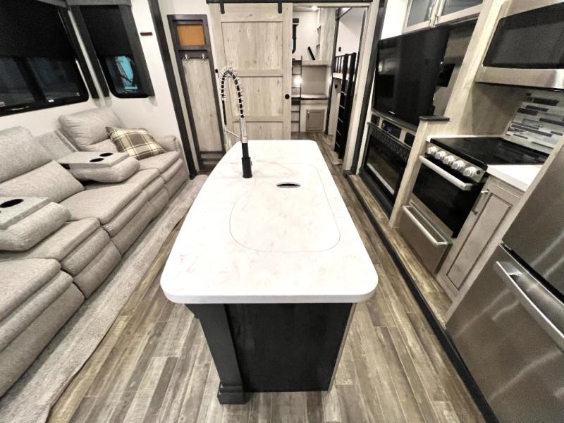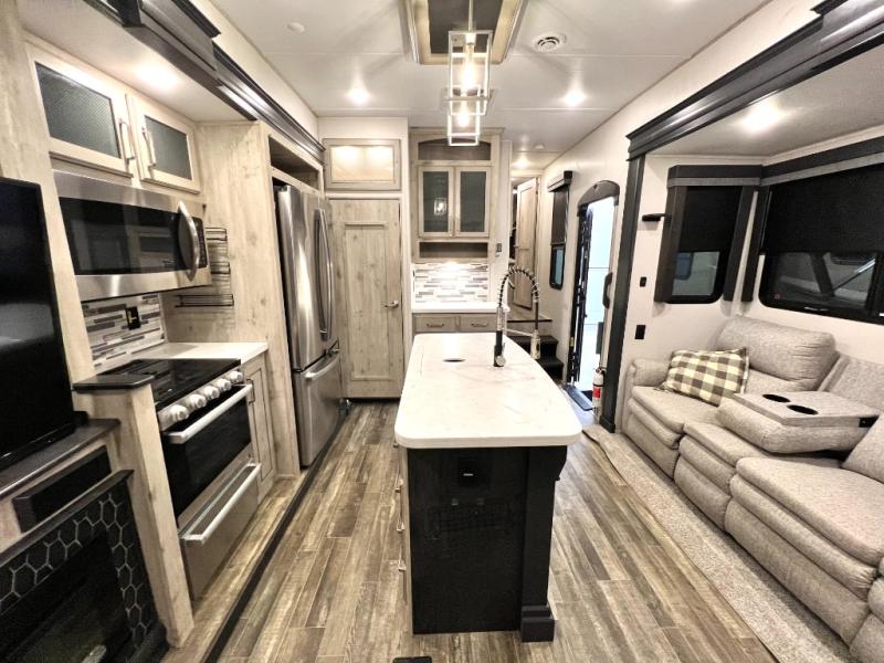 With any Keystone luxury full-profile Avalanche fifth wheel, you will experience wide-body construction that allows you to stretch out and stay awhile during any season thanks to the Polar Pack All Season Protection that includes a heated and enclosed underbelly, an Astro foil reflective layer on the roof, front and rear walls, and two static attic vents, plus more! The interior offers hardwood slide out fascia with wood accents, crown molding, plus your choice of modern interior design. There are many more Keystone exclusives, like the Tru-Fit slide construction, the in-floor heating ducts, the 4G LTE and Wi-Fi prep, and much more to bring you a full-packed, luxury fifth wheel!
