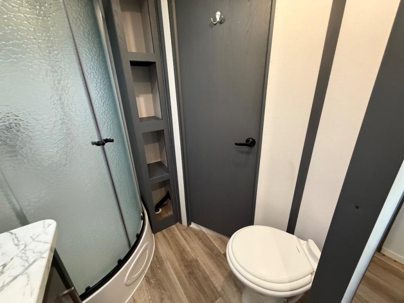 With any Keystone Bullet travel trailer you can experience ultra-lightweight camping with style! The interior design and functionality will impress you, and the stunning cabinetry, the vaulted ceilings, and the built-in laundry chute are just a few of the highlights. Each is built with Hyper Deck RV flooring that is stronger, lighter and more resilient than traditional wood laminated flooring, a 51 cu. ft. pass-through storage compartment which provides 25% more storage space and has a 40" wider door meaning easier access and more room for supplies, and a docking station, an easily accessible convenience center with water connections, water heater bypass, KeyTV hookups, stabilizer jack switches and winterization access. You will also find a Giggy box, a weather protected, labeled, and fused electric box, plus more Keystone Exclusives. Start your glamorous and carefree trip today in a Bullet!