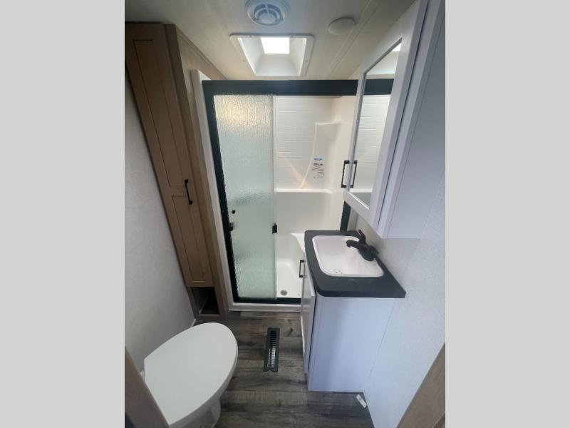 With any Keystone Carbon toy hauler, you will receive rugged construction from the industry-leading patented 5,000 lb. capacity tie-downs that are welded to the frame to increase hauling safety and security plus the Dyna Span floor decking in the garage, off-grid camping with the Solar Flex 200 which delivers an affordable, high-quality RV solar energy system, and a comfortable interior with the exclusive Omni-Chill technology that offers high-efficiency air conditioning and maximum cooling. Other unexpected conveniences include wireless charging without chunky cables, soft-close hardwood cabinetry allowing you to sneak snacks without others noticing, and designer style flooring throughout for easy care and a stylish look. And each Carbon includes Keystone Exclusives! Now all you have to do is take charge of how you camp in a toy hauler fifth wheel or travel trailer!