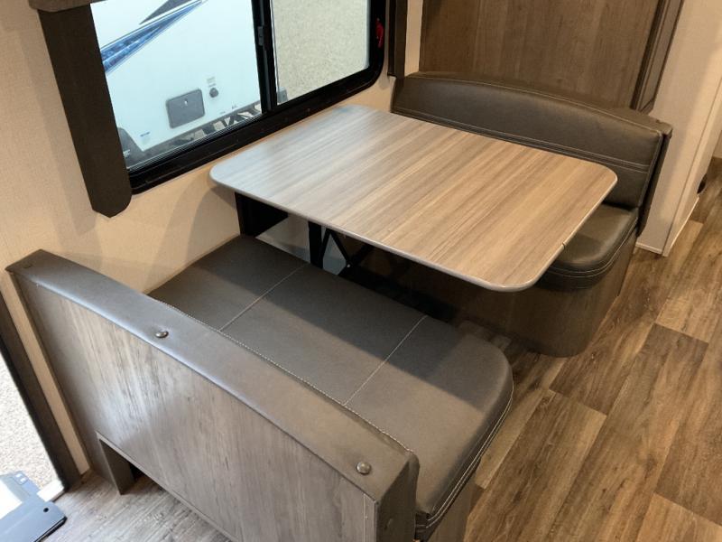 With a king-size bed, this Cougar Half-Ton travel trailer shows that you can still be comfortable even while you're away from home! The bed has wardrobes and nightstands on either side, and it also has a privacy curtain to section it off from the rest of the trailer. When you use the LCI Solid Step entry to get inside, you'll notice and appreciate the shoe cubby to your left. Right next to the booth dinette is the pantry, and next to the pantry is the full bathroom which is certainly one of the most valuable features to any trailer.
