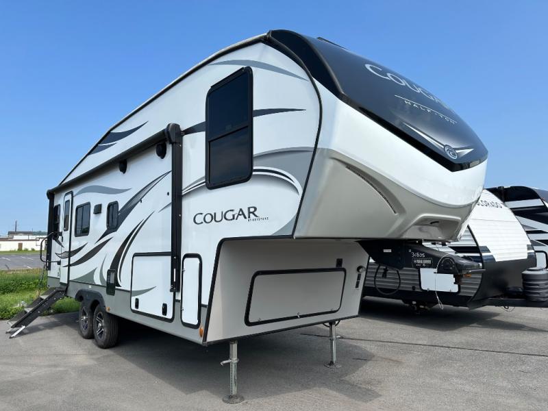 Spend your weekends in comfort with this Cougar Half-Ton fifth wheel! A full bathroom with a linen closet and shower with seat will provide convenience no matter where you've chosen to camp. You'll also be grateful to find a full kitchen with a 21" Furrion range with Piezo ignition and microwave so that you can get dinner ready in no time at all, and the private bedroom up front is where you will want to be at the end of a long day. You can also add an optional fireplace to this model to create a cozy atmosphere.