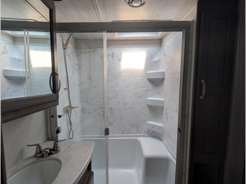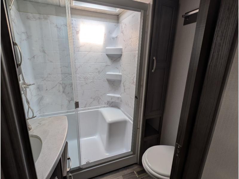 Spend your weekends in comfort with this Cougar Half-Ton fifth wheel! A full bathroom with a linen closet and shower with seat will provide convenience no matter where you've chosen to camp. You'll also be grateful to find a full kitchen with a 21" Furrion range with Piezo ignition and microwave so that you can get dinner ready in no time at all, and the private bedroom up front is where you will want to be at the end of a long day. You can also add an optional fireplace to this model to create a cozy atmosphere.