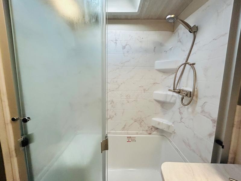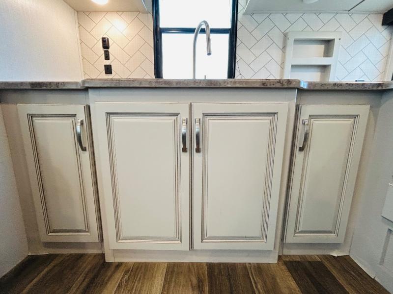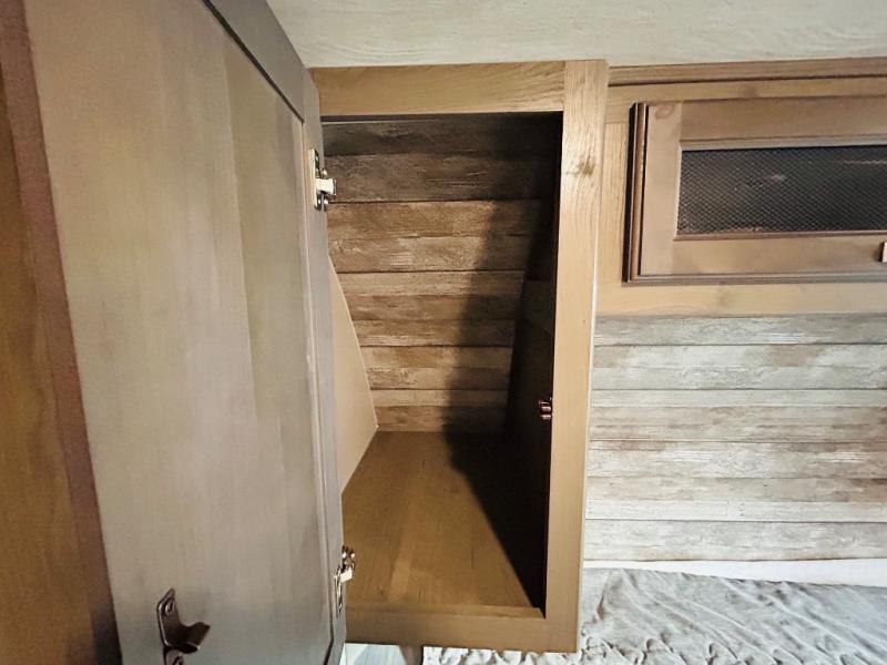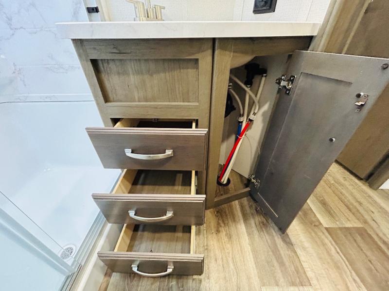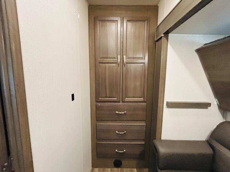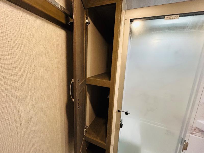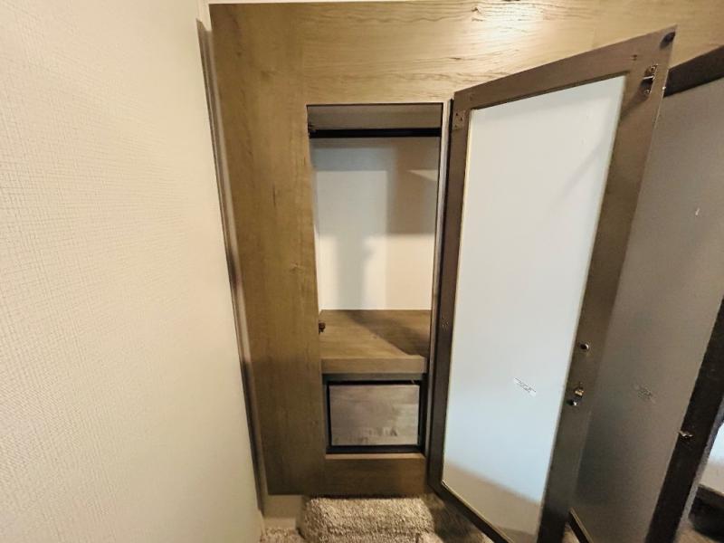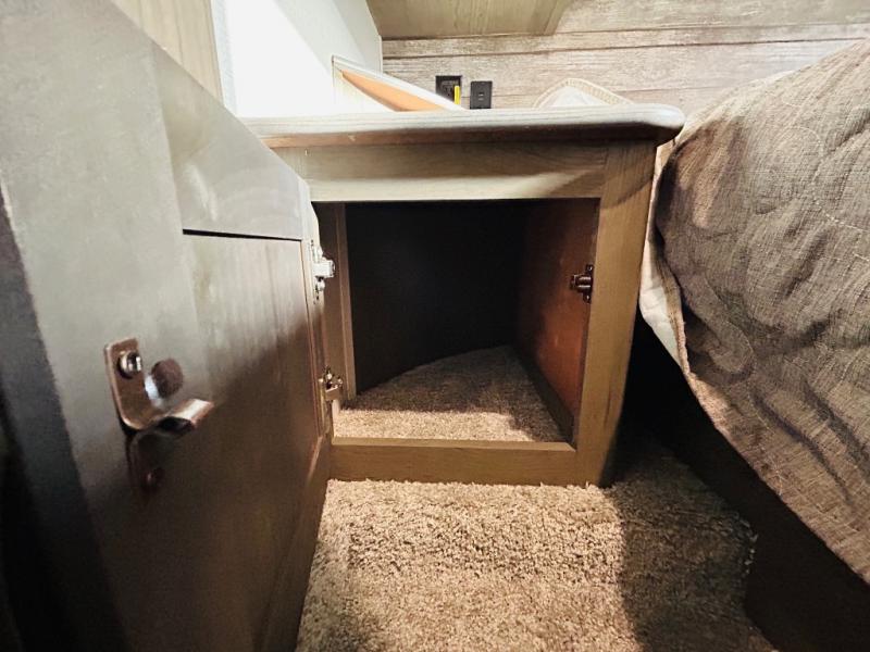 You'll have a new way to vacation once you get this Cougar Half-Ton fifth wheel in the driveway! Because this unit has two bedrooms, you'll be able to sleep separately and comfortably each night. The front private bedroom has a wardrobe slide so that you can store your garments, and the private bunkhouse has a slide out with a flip bunk above a sofa. Plus, there is also a desk top so that you can sit down and get some work done whenever you need.