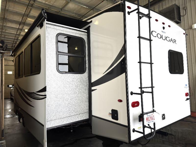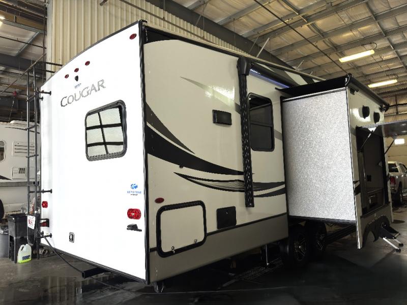 You'll have all that you need to enjoy every adventure with this Cougar Half-Ton fifth wheel! A 60" tri-fold sleeper sofa, theater seating, and a booth dinette give you comfortable accommodations to offer to any friends that stop by, and you'll be able to offer them more than just a place to sit because the 21" Furrion range and microwave will allow you to prepare sweet treats for those guests. If you all head out to look at the stars, you can grab some extra lawn chairs from the exterior pass-through storage compartment.