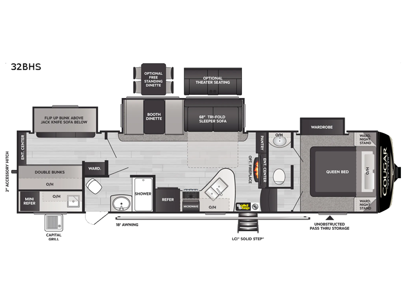 Keystone Cougar Half-Ton fifth wheel 32BHS highlights: