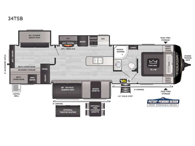 Keystone Cougar Half-Ton travel trailer 34TSB highlights: